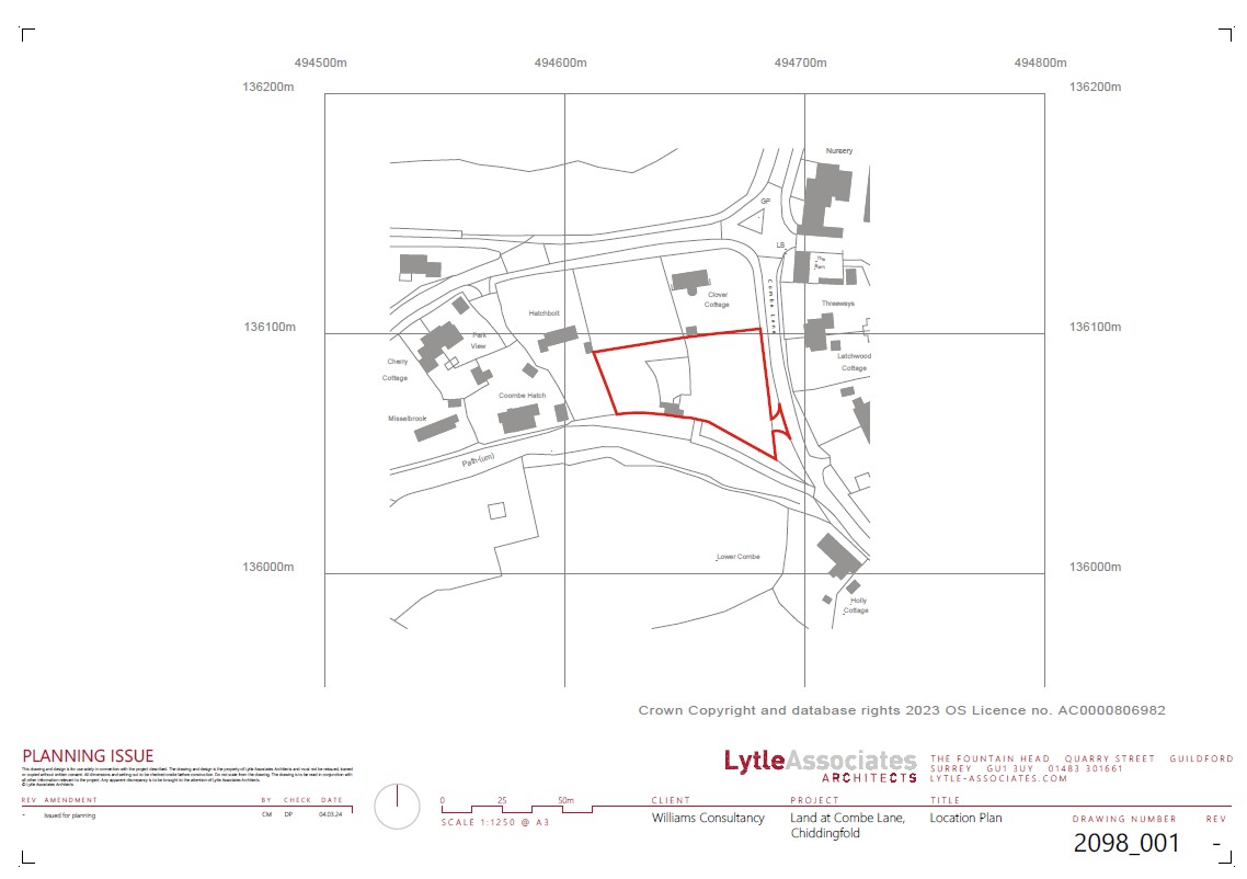 Land in a stunning location on Combe Lane in Chiddingfold, Surrey. Situated in the heart of the Surrey Hills an Area of Outstanding Natural Beauty. Site extends to 0.599 of an acre/0.243 hectre