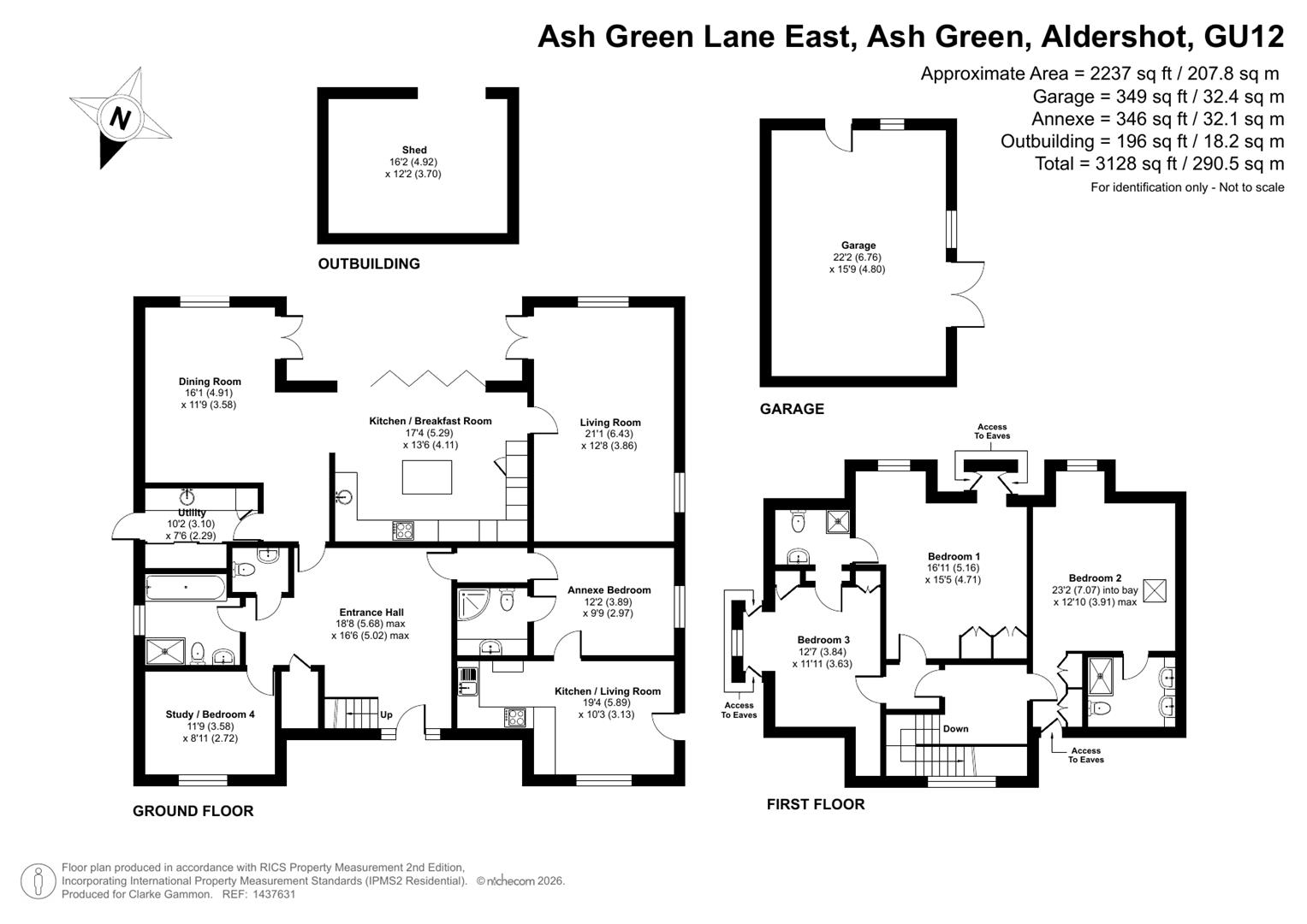 - Fourth bedroom/office on the ground floor.