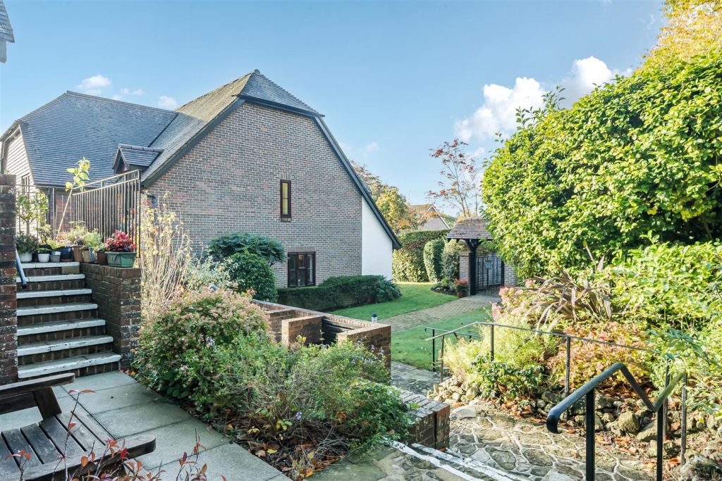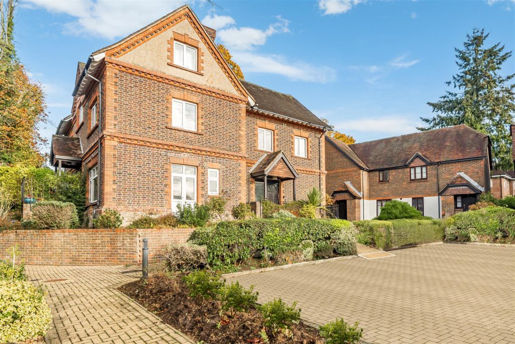 Heart of the community, a conveniently located ground floor maisonette for the over 60s perfectly located within a third of a mile for Haslemere High Street. With direct access to communal gardens and benefitting form a predominately south/west aspect, this once Doctor's Surgery retains both heritage and character. With wheelchair friendly access to a covered entrance porch and glazed front door the entrance hall benefits from good natural light/volume typical of the era. The living room has a double aspect with double glazed windows to rear and double-glazed door with window providing access to paved tiered terrace. The recessed feature rebrick fireplace has windows either side making this focal point stand out. Across the hall is the kitchen benefitting from a modern fitted kitchen offering a range of eye/low level cupboards/drawers, roll top work surfaces, inset stainless steel 1½ bowl sink unit with mixer tap and drainer. Completing the kitchen there is a four ring AEG gas hob with extractor hood above, AEG oven, integrated fridge/freezer, Bosch integrated dishwasher, part tiled walls and space for table/chairs. The master bedroom has a double aspect front and side, built-in wardrobes, a coved ceiling, TV point, built-in dressing area and a wardrobe whilst the ensuite wet room has a walk-in shower, wash hand basin with mixer tap set within vanity cupboard, low level w.c., chrome heated towel rail, part tiled walls, tiled flooring and an obscure double glazed window. In the main bathroom there is an enclosed bath with wall mounted shower attachment, wash hand basin set in vanity unit, low level w.c., double radiator, shaver point, part tiled walls, obscure dual aspect double glazed windows.