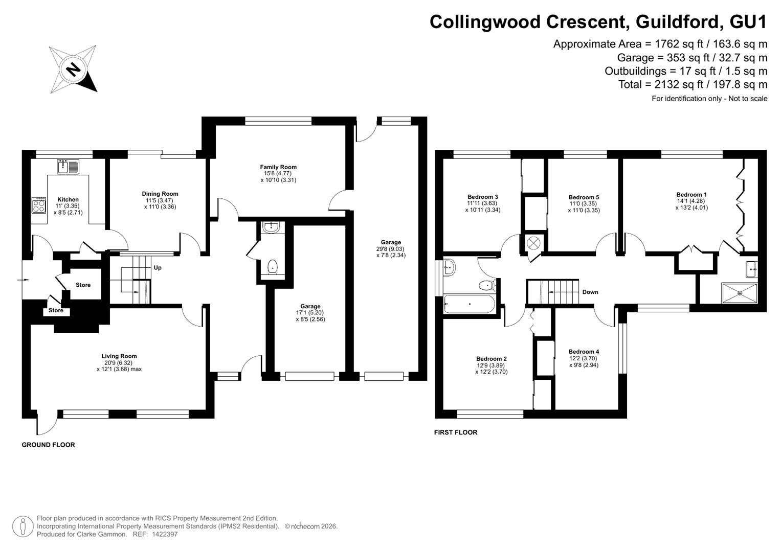 A rare opportunity to acquire a substantial detached family home, positioned within a quiet and established residential cul-de-sac in the highly regarded area of Boxgrove, offered to the market with no onward chain and for the first time in almost 60 years.Constructed in the 1960s, the property offers well-balanced and versatile accommodation extending to over 2,100 sq ft, providing an excellent foundation for modernisation and extension (subject to the usual consents). The ground floor comprises a generous dual-aspect living room, a separate dining room, kitchen, and a further family room overlooking the rear garden, alongside a downstairs cloakroom and useful storage. The layout offers clear potential to create open-plan living in line with modern family requirements.To the first floor, there are five well-proportioned bedrooms, including a principal bedroom with en-suite shower room, making the property ideally suited to growing families. The bedrooms benefit from pleasant outlooks over the surrounding residential area and gardens.Externally, the property enjoys a mature and well-maintained rear garden, offering a high degree of privacy with established planting, lawn and patio areas ideal for outdoor entertaining. To the front, there is a driveway providing off-street parking leading to separate single and tandem garages. The property represents an exciting opportunity to acquire a long-held family home in a popular residential location, with significant scope to enhance.