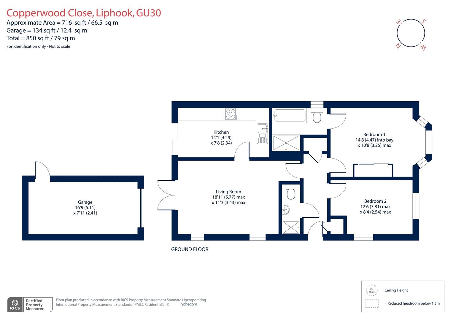 A fine detached bungalow set in this extremely convenient location in the centre of Liphook and within easy walking distance of local shops and amenities. Highlights include a lovely double aspect lounge/dining room with patio doors out to the rear garden and a well appointed kitchen/breakfast room with integrated appliances and sliding doors out to the rear garden. The master bedroom has mirror fronted wardrobes and a full ensuite bathroom with separate shower. The accommodation is completed with a second bedroom and shower room.To the front and one side of the property there are well stocked beds whilst the main area of garden is enclosed by a wall and features patio, lawn and well stocked borders. There is access from the garden to the GARAGE and to the front of the garage, additional driveway parking.Copperwood Close is an extremely well placed private cul-de-sac of just nine properties, built in 2010 by well regarded builders, Bargate Homes. Situated close to the centre of the village which offers a good selection of local amenities including independent and nationally owned shops including a Sainsbury's Supermarket, bakers, cinema, pharmacy and doctors and dentist surgeries. To the rear of the development there are communally owned woodlands preserved for the benefit of Copperwood Close residents. The A3 can be accessed at Bramshott, whilst Liphook mainline station provides rail services on the Waterloo to Portsmouth line. The surrounding area is noted for its beautiful countryside much of which is in the South Downs National Park or is owned by the National Trust.