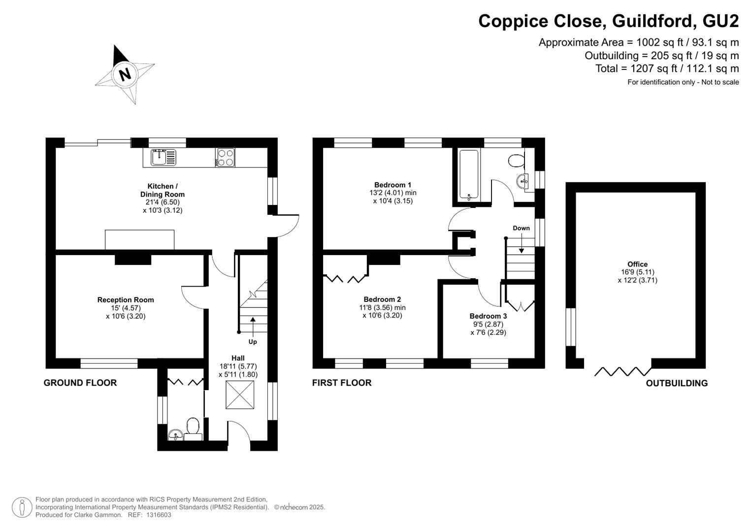 Situated in a peaceful cul-de-sac and offered with no onward chain, this beautifully presented three-bedroom semi-detached home offers spacious and versatile living, perfect for families or professionals alike.Upon entering, you are welcomed into a generously sized hallway, thoughtfully extended to include a modern downstairs cloakroom and enhanced by a roof light that fills the space with natural light. To the front, a bright and airy reception room provides a cosy sitting area, while to the rear, the open-plan kitchen/diner forms the heart of the home. The shaker-style kitchen is well-equipped with provisions for all standard white goods, an electric hob with cooker hood, a built-in double electric oven, and a stainless-steel sink with drainer. Patio doors open directly onto the garden, and a convenient side entrance adds further practicality.Upstairs, the property offers two spacious double bedrooms—one featuring built-in storage—and a well-proportioned single bedroom. The modern family bathroom is fitted with a sleek three-piece suite, including a P-shaped bath with shower over, a vanity unit with integrated basin and WC, and stylish contemporary tiling.The rear garden is a standout feature, enjoying a north-facing position with an uninterrupted east-west aspect that allows for sunlight throughout the day. Designed for low maintenance, it includes a patio area that wraps around the side of the house, raised sleeper borders, and a lawned area ideal for children or pets. A high-specification garden building with power and lighting - as well as heating and internet connectivity - offers excellent potential as a home office, gym, garden bar, or creative studio. A garden shed provides additional storage.