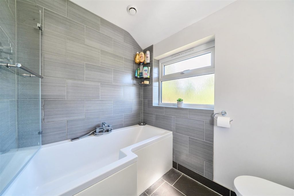 - Modern 3 piece bathroom with P-shaped bath and shower