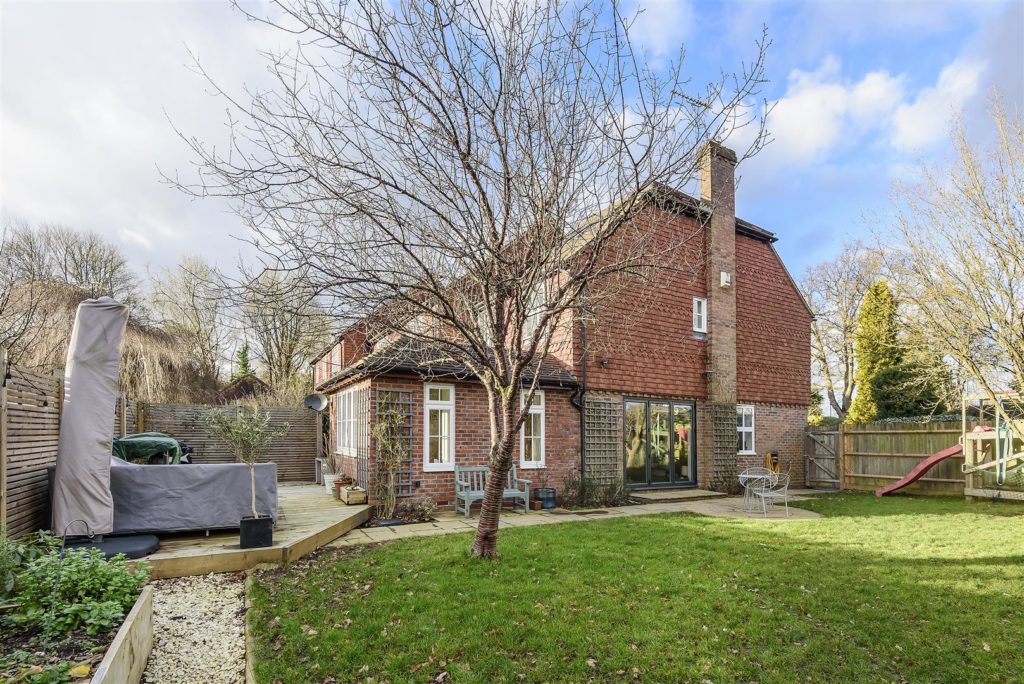 Located in the heart of Chiddingfold, a well presented four bedroom family home within a small non estate development close to the village centre.Acorn Cottage was built by Lacey Simmonds in 1995 forming part of this small and attractive development of just ten homes which lie close to the village centre and less than half a mile from the primary school. The current owners had the property thoughtfully extended in in 2018 creating a new main bedroom and en-suite shower room in the loft space and on the ground floor a lovely new sitting room with a part vaulted ceiling, oak beams and gas fired wood effect stove. As part of these improvements what previously was the main sitting room has become a spacious and well appointed kitchen/dining/family room having bi-fold doors out to sun terrace and south east facing garden. With its end terrace position, the property benefits from having the largest plot on the development along with a garage and allocated parking space. Also on the ground floor are a study, reception hall and cloakroom. On the first floor are three bedrooms; two having generous wardrobe cupboards and a superbly refitted bathroom.The Oaks is approached via a driveway off Coxcombe Lane which leads to the garaging, allocated parking space and visitors parking spaces. Acorn Cottage has a gate leading to side and rear garden which is level and enjoys a sunny south east facing aspect and has natural stone pathways, a circular sun terrace, established fenced and hedged boundaries and a rear south facing raised sun deck. There are outside power points and hose tap.