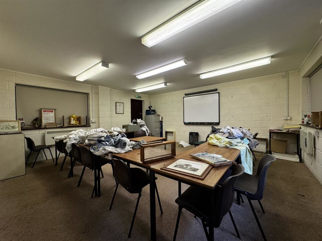 - Brick-built building onsite with a large classroom, kitchen/utility room, cloakroom, and garage
