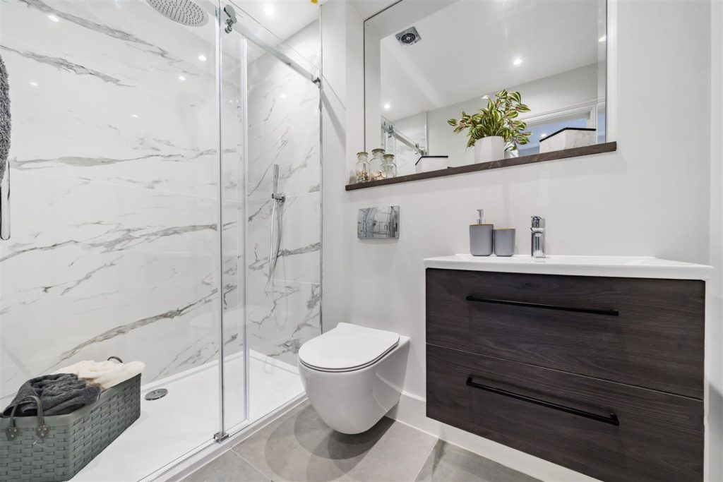 The house forms part of a small development of only 6 houses and Longbeach is a rare opportunity to acquire a house of its size with 5 bedrooms. There is a spacious hallway with cloakroom off, which also gives access to the sitting room. The spacious kitchen breakfast room incorporates another reception room area which offers flexibility for either a dining or family room, which has bi fold doors leading to the rear garden. On the 1st floor there is a master bedroom suite with an en suite shower room, there are 3 further bedrooms, and a spacious family bathroom with both bath and shower. On the 2nd floor there is the 5th bedroom, and shower room.Outside to the front of the property providing parking for 3 cars. The rear garden is level, enclosed, and predominantly laid to lawn with a south facing patio area adjacent to the house. There is outside lighting, waterproof electric sockets, and there is a garden shed.