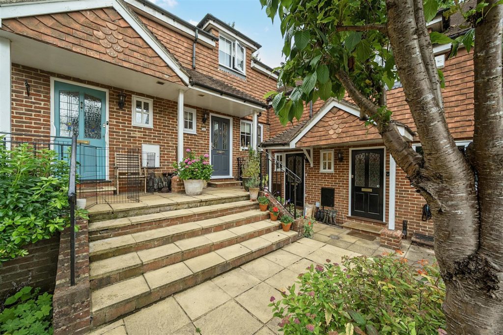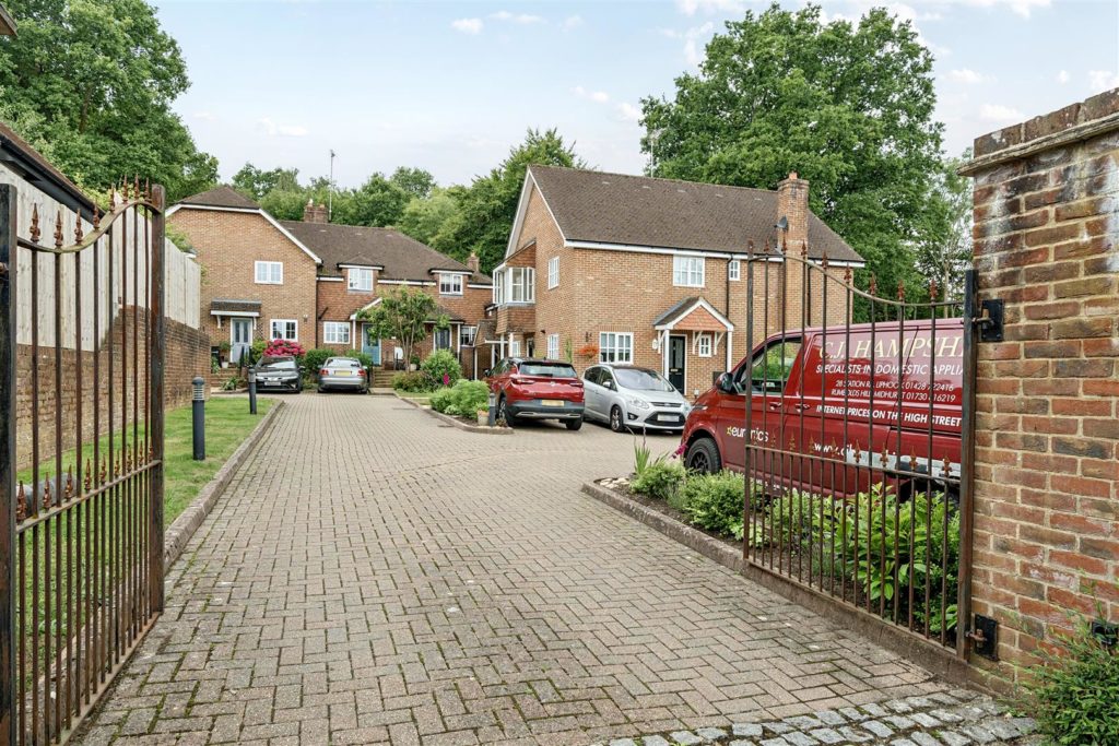 Built in 1999, the current homeowner is the 2nd custodian and was particularly drawn by the private setting, access to local villages and good transport links. On the ground floor there is modern durable flooring running from the hall through into kitchen/dining area, whilst off the hall there is a useful WC and under-stairs cupboard providing useful storage. In the fitted kitchen there is plumbing for a washing machine and dishwasher including space for an under cupboard fridge or freezer. Throughout there is double glazing and gas central heating whilst the bathroom is part tiled with matching pedestal wash hand basin suite, a close coupled w.c., a panelled bath with Aqualisa Aquastream shower, mixer taps/hand shower, convector radiator and a built in airing cupboard with lagged hot water tank.Both bedrooms are doubles with the master located to the rear benefitting from a discreet, large built in wardrobe, (one side with double level hanging rail) and second also benefitting from a built in wardrobe cupboard. From the living room there are French doors directly accessing the small, decked garden space where the communal grounds are also accessible, all surrounded by mature planting offering good privacy. Annual service charge for upkeep of communal grounds, electric gates, external lighting and liability insurance is circa £1,200 per annum.