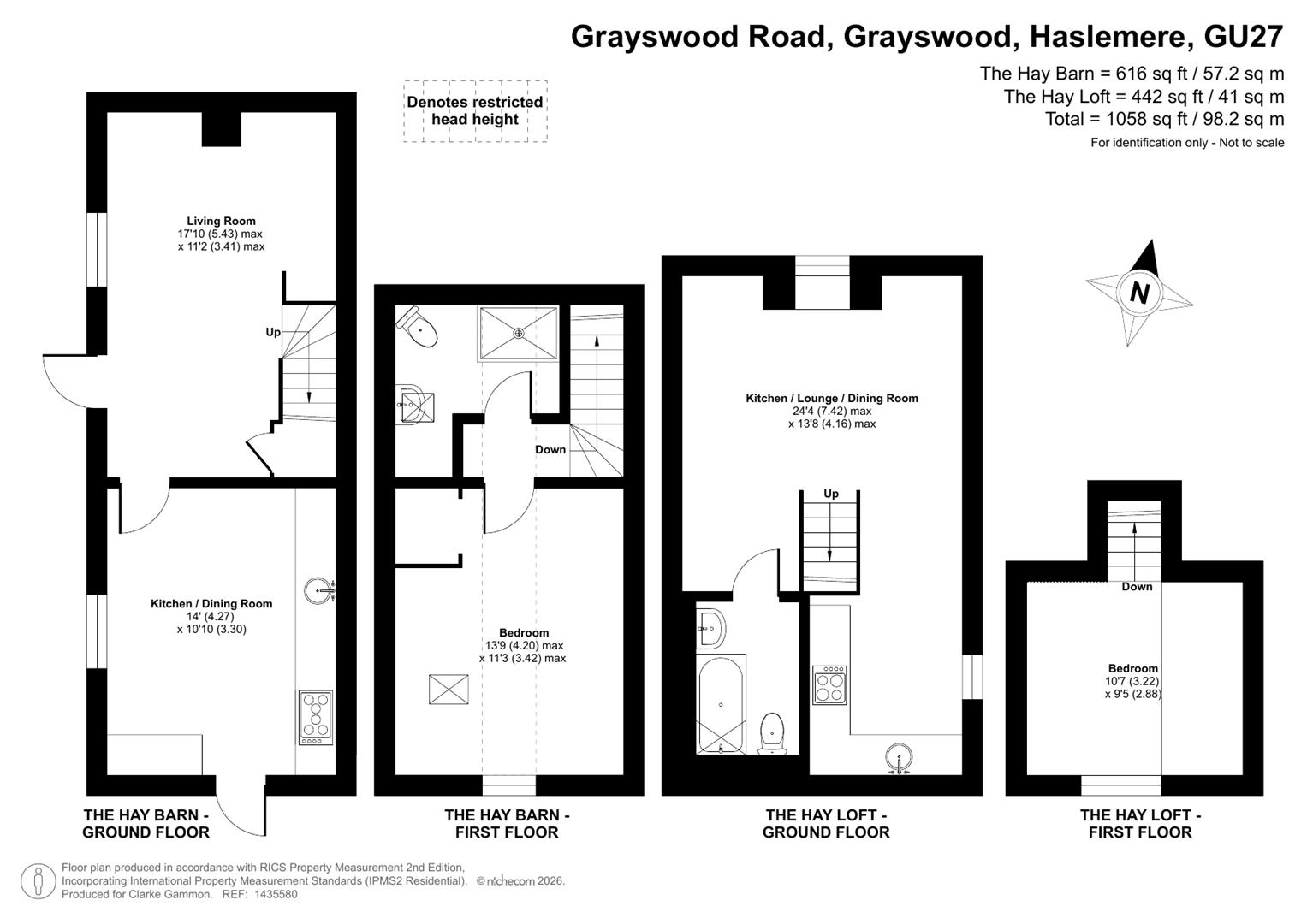 Two interesting and intriguing character detached barn conversions, privately situated next to Grayswood village green, with planning permission applied for to join the two and create a single three bedroom dwellingA unique opportunity to purchase two detached converted barns - The Hay Barn & The Hay Loft enjoying a private and discreet courtyard setting next to Grayswood village hall. Both barns ooze, charm, character and cosiness with the potential to be joined together to create one, mainly single story three bedroom dwelling. Our vendor clients have applied for planning permission to do this - Planning Ref WA/2025/02342, proposed plans and drawings are available from Clarke Gammon. The Hay Barn comprises of accommodation arranged over two floors. The main reception room has a vaulted ceiling with many exposed timber beams and a central wood burning stove. There is a fitted kitchen/dining room with a range of units and dining table space. . The first floor is equally as charming, providing one bedroom and a bathroom. The Hay Loft is slightly smaller, but no less charming with more exposed beams, an open plan living room kitchen, shower room and mezzanine style bedroom area. . These beautiful barns need to be viewed to be fully appreciated.The property is approached from Grayswood village hall car park where coded automatic gates leads into the property where the garden is mainly shingled. Centrally between the Hay Barn & Hay loft is an attractive rectangular paved edged feature with box hedging. There is an area of raised decking for outside dining and a parking area to the right of the larger barn with ample additional parking