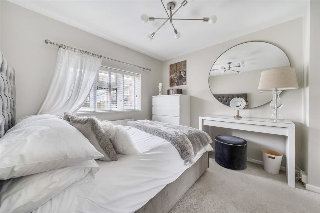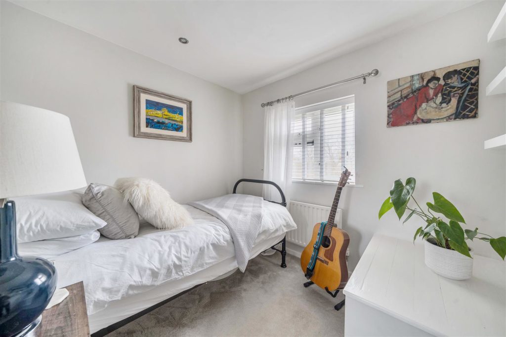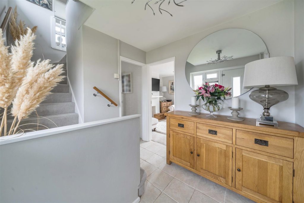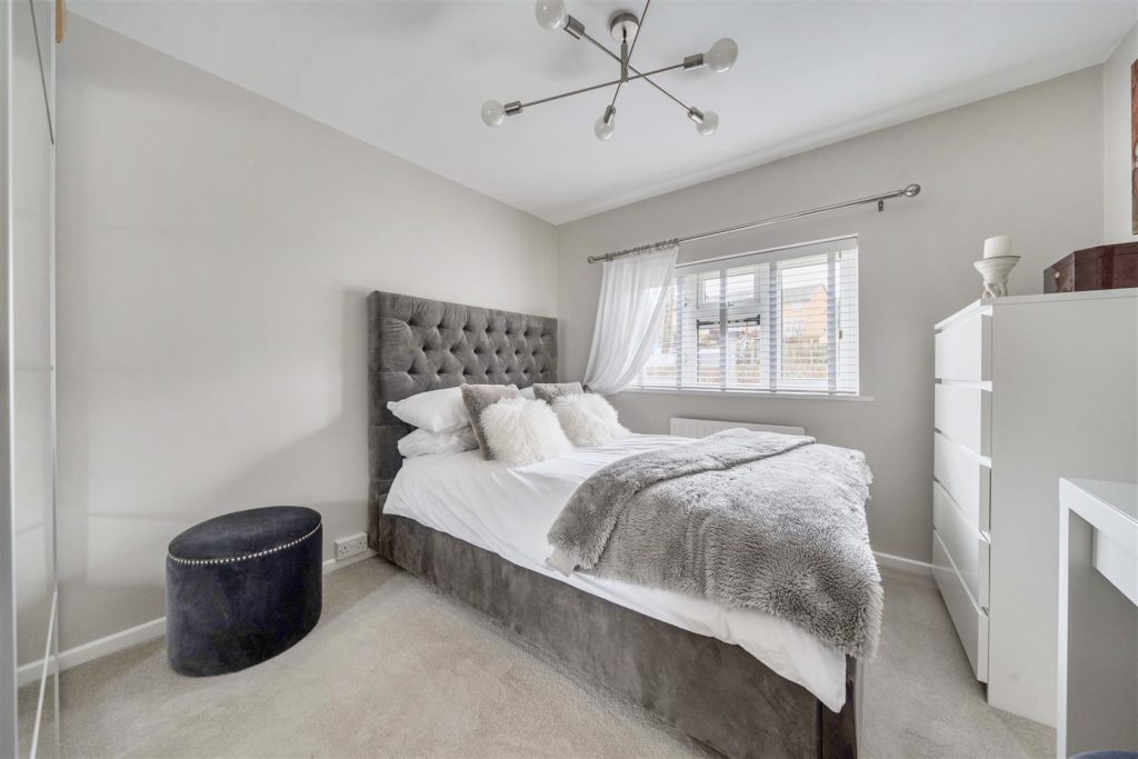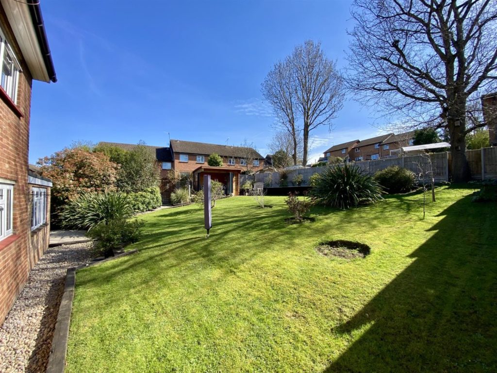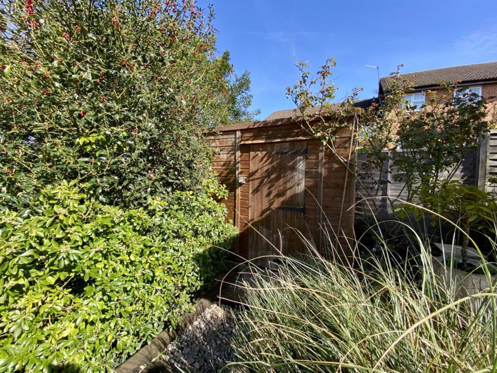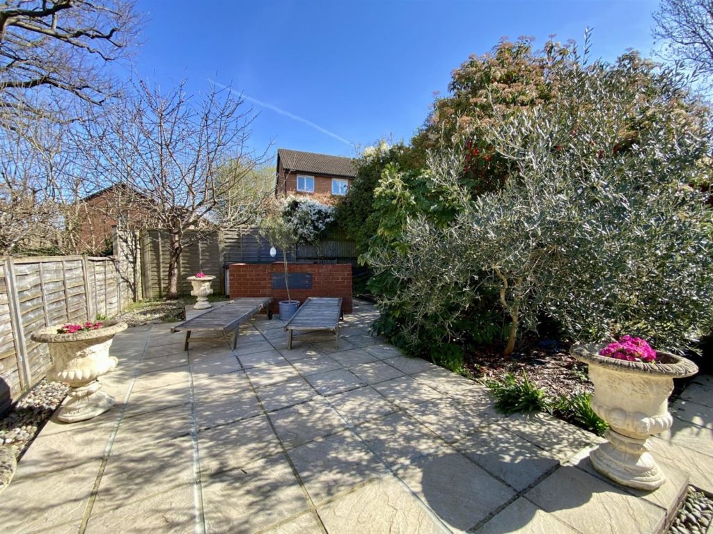 The garden is a standout feature—substantially larger than typically found in the area and thoughtfully arranged to create distinct zones. Stepping out from the dining room, a generous patio provides the ideal space for dining and entertaining, complemented by a secluded sun-bathing area and a brick-built BBQ. The remainder of the garden is laid to lawn, framed by raised beds and a selection of mature planting including shrubs, grasses and phormium.