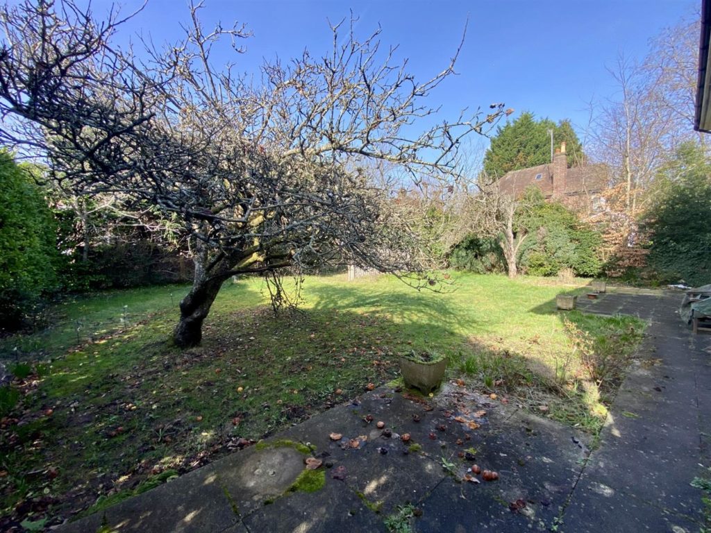 - Westerly backing garden, mainly laid to lawn with patio, mature trees, and shrubs