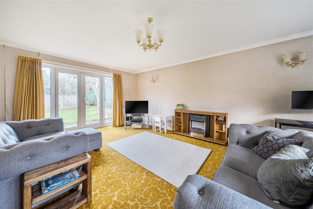 - Double-aspect living room with doors to the garden and separate dining room