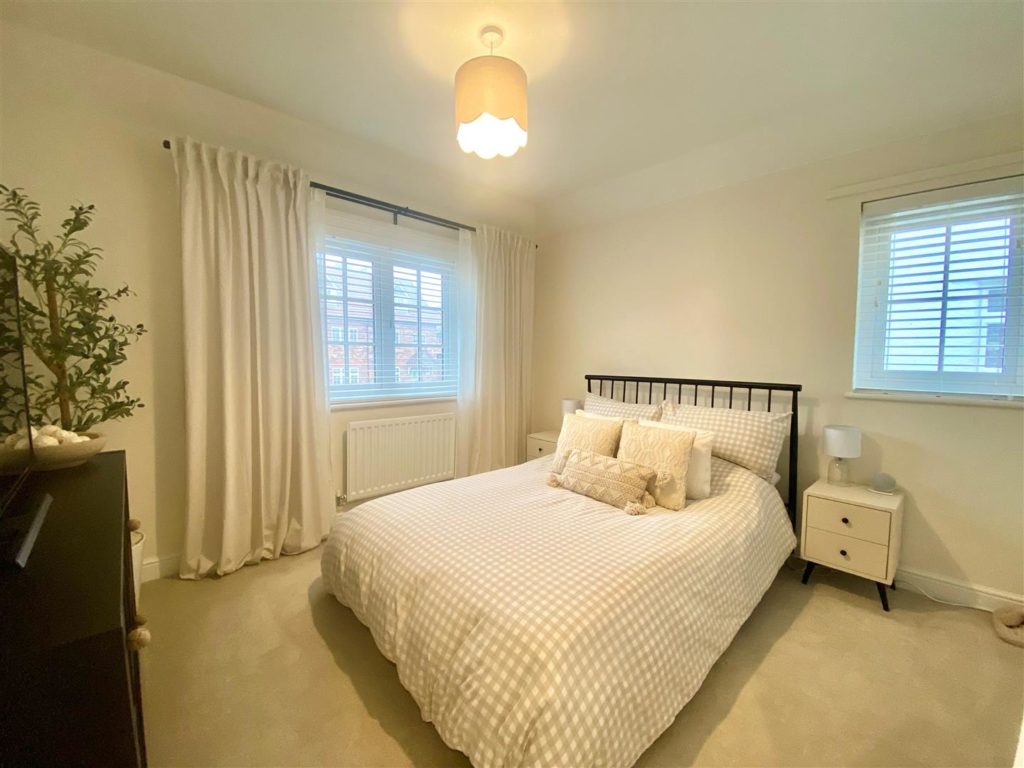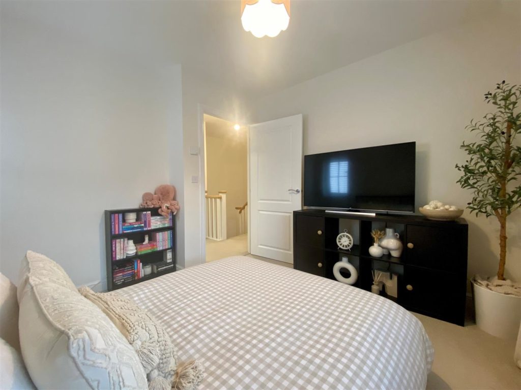 A nearly new, 2023 quality home which is faultlessly presented across its two floors. Classically know as a ‘cluster house’ this design often proves popular with those buying one of their first homes, or seeking a slightly smaller and more economical option. As you step inside, you’re welcomed by a carpeted hallway with handy space for coats and shoes, plus the added bonus of a downstairs WC. Moving through the house, you’ll find a spacious open-plan kitchen, dining, and living area – perfect for everyday living and entertaining. The kitchen has stylish wood-effect flooring, fresh white units, and comes complete with an integrated electric oven, gas hob, and extractor fan. There’s also a stainless-steel sink under the window and space for a fridge/freezer and washer/dryer.The living and dining area is carpeted and filled with natural light thanks to two windows. It also has TV, telephone, and Sky/cable points, making it a great spot to relax or host friends.Upstairs, the carpeted stairs lead to the landing, where you’ll find two generously sized bedrooms and the bathroom. Both bedrooms are carpeted and include TV, telephone, and Sky/cable points. The main bedroom benefits from two windows. The family bathroom features a shower over the bath, partially tiled walls, and wood-effect flooring.Outside, the front garden is easy to maintain, with hardstanding and established shrubs.Please note-this price is for the full leasehold ownership of the property. It can can also be purchased at a 70% share, subject to conditions and a qualification process. Full lease details and additional charges will follow shortly.
