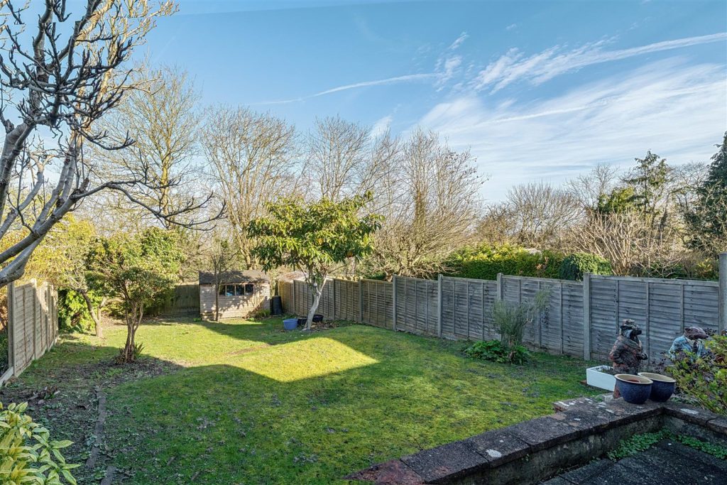 - Rear garden with patio, lawn and shed