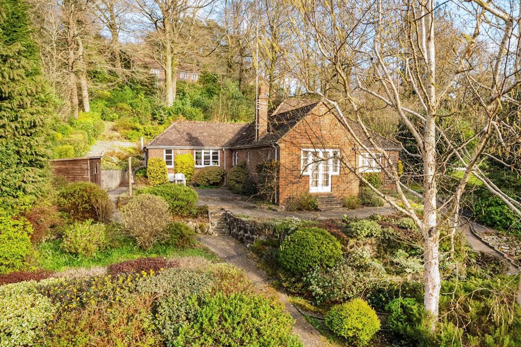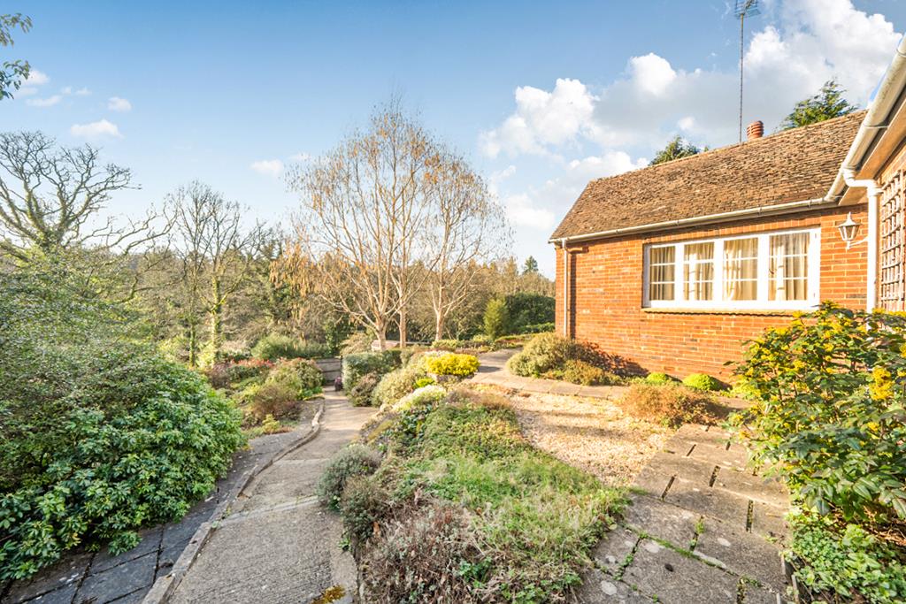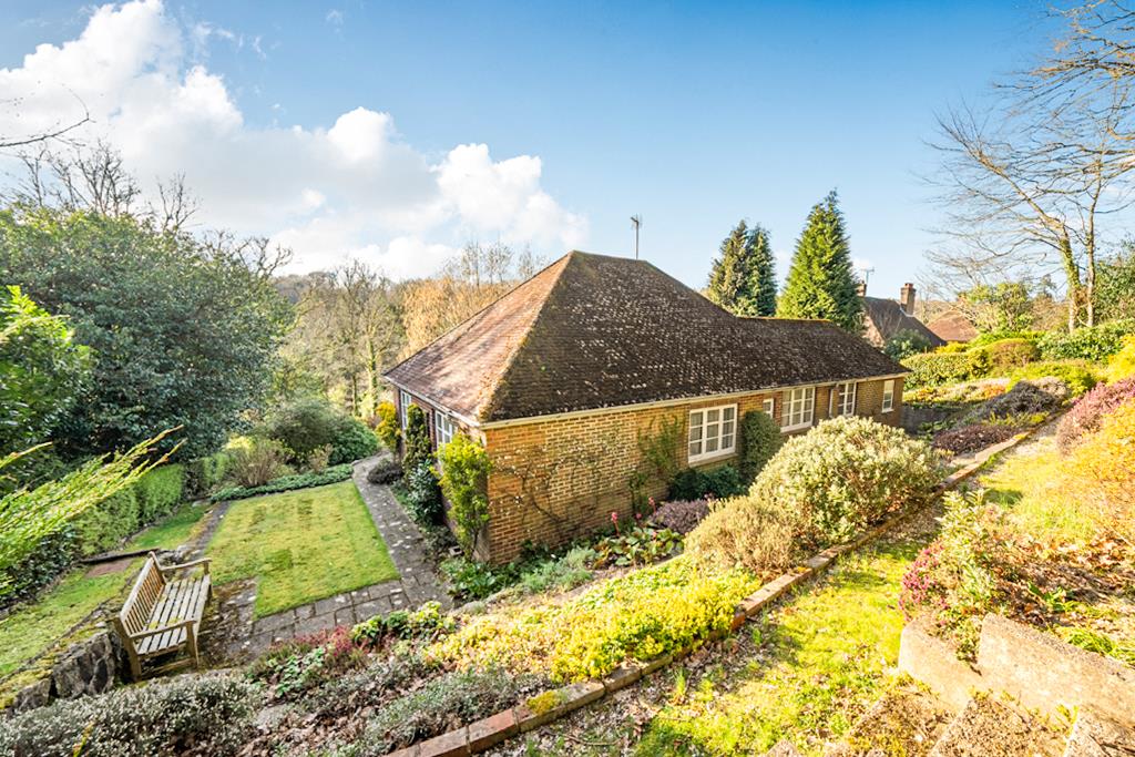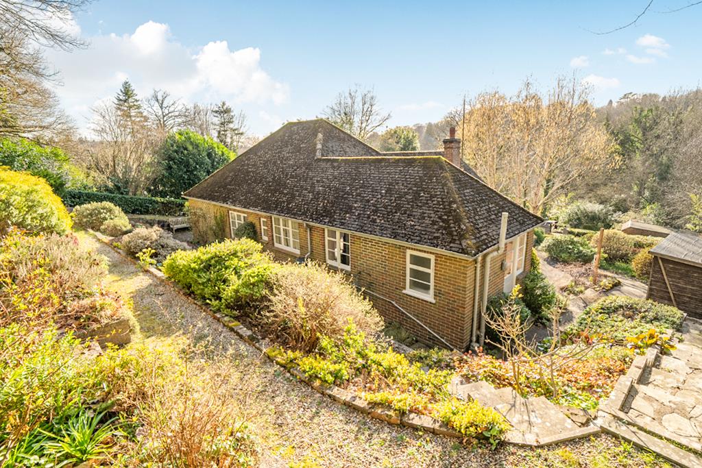 This detached Bungalow present a rare opportunity to re-model and extend a well built property set on an elevated plot of just under half an acre, surrounded by woodland. Whilst habitable, it does need some updating but has a recently installed Gas fired Boiler.Originally built we believe, in the 1950's, it enjoys well proportioned room sizes throughout and whilst the plot is sloping, there's level ground immediately surrounding the Bungalow so extending it, is very much an option. Offering a generous Hallway, a Living Room with views over to Nutcombe Valley, a Kitchen with adjoining Utility/Boot Room, 3 good sixed Bedrooms and a Family Bathroom. It also benefits from a very substantial Loft space for potential conversion.Outside, it is approached on a private drive leading to its own driveway and access to a detached Garage with power and light. The sloping Gardens are substantially stocked with a huge selection of shrubs, bushes, plants, flowers and various trees, the Late Owner was very proud and invested in her Garden! Set on several levels, a pathway leads to the Property and a large Patio that extends around it. The back Garden slopes upwards and away with more landscaped levels, planting and all leading to a light woodland at the very end, naturally, the views are impressive!