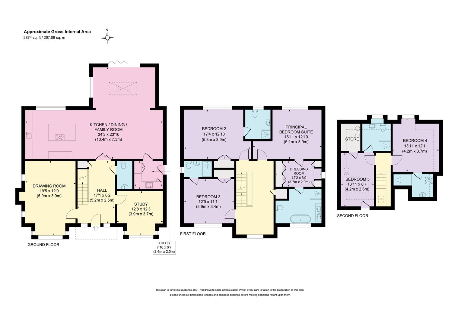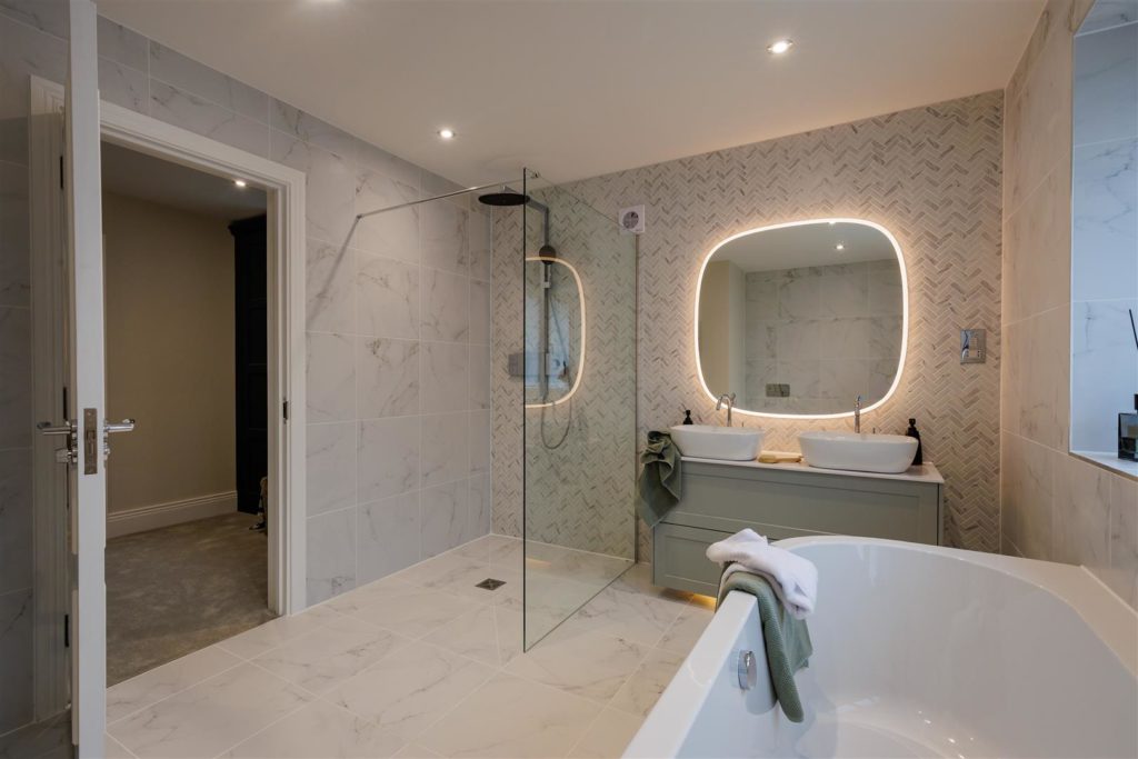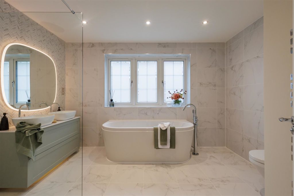 Oakhurst House is one of just three detached homes in this exclusive development by locally award winning developer, Aspen Homes. The property offers superb a living space of over 2,870sqft over three floors. The property has been beautifully designed to provide light and airy accommodation and finished to an excellent specification including a bespoke Crouch Design kitchen.To the ground floor there is a spacious hallway with herringbone flooring giving access to the large drawing room with bay window, large study and the awe-inspiring open plan kitchen/dining room with a beautifully appointed Crouch Design kitchen including a range of integrated Siemens appliances, Quooker boiling tap and BORA induction hob, all with aspects over the large Sorrento Stone Porcelain patio and landscaped garden. In addition there is a fully appointed utility room with Miele appliances.To the first floor is an outstanding principal bedroom suite, with dressing area fitted with bespoke wardrobes and dressing table and a well-appointed ensuite bathroom including separate shower. In addition, there are two large double bedrooms, each served by their own ensuite shower rooms and built in wardrobes. All bathrooms and ensuite have wall hung sanitaryware, Hansgrohe brassware and are individually tiled by Porcelanosa. The second floor has been used to create two further bedroom suites both with shower rooms. Unlike many new build homes, the property benefits from an abundance of built in storage throughout the house.For a full specification, please refer to the full brochure or contact Clarke Gammon. *Note Photos are of Oakhurst House (Plot 1), taken in March 2026.