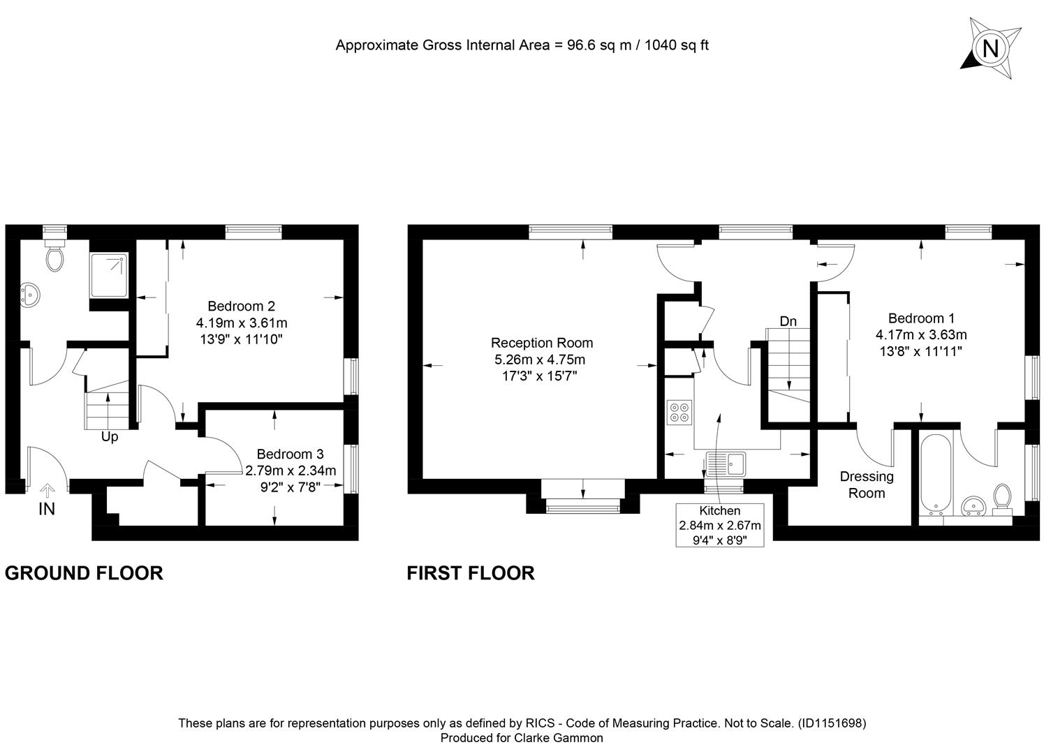 Re-launched for 2026! This is a truly immaculately presented 3 Bedroom property with spacious accommodation set over 2 levels. With over 1,000 sq. ft, it has just been professionally re-decorated and has a replacement Combi boiler which is only 3 years old.Upon entry, you'll find a welcoming reception Hall that leads to Bedrooms 2 and 3. Also on this floor is a modern Shower/Utility Room. Ascending the stairs to the first floor and you'll encounter a bright and generously sized double-aspect Living Room with laminate wood flooring. The separate Kitchen has an attractive range of base and eye-level units, complete with an integrated 4-ring gas hob, double oven, and extractor fan. The Master Bedroom suite is on this floor and features a generous walk-in Dressing Area in addition to a bright en-suite Shower Room. Another Family Bathroom completes the light and well ventilated accommodation.Set amongst communal lawned and well maintained Gardens, the property benefits from an allocated parking space with further additional visitor spaces available.