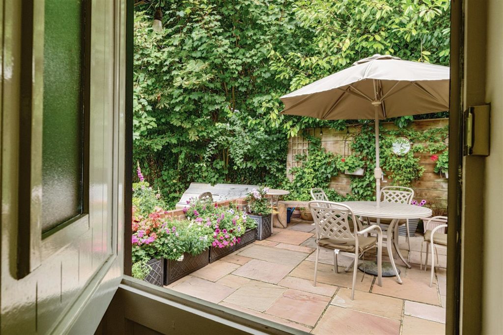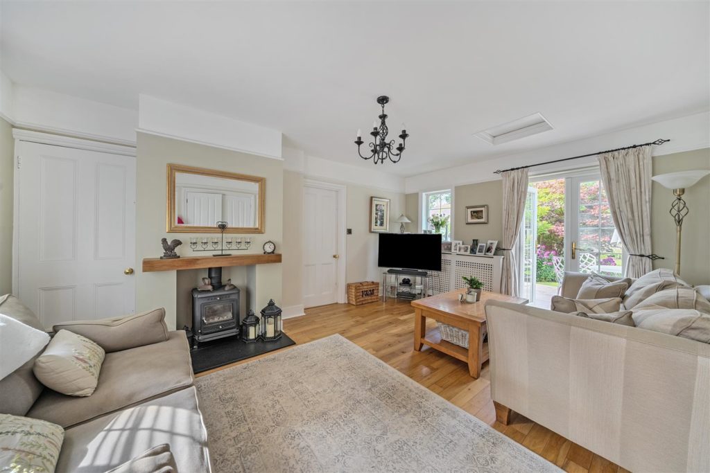 - Generously sized dual-aspect living room with log burner and French doors to the garden