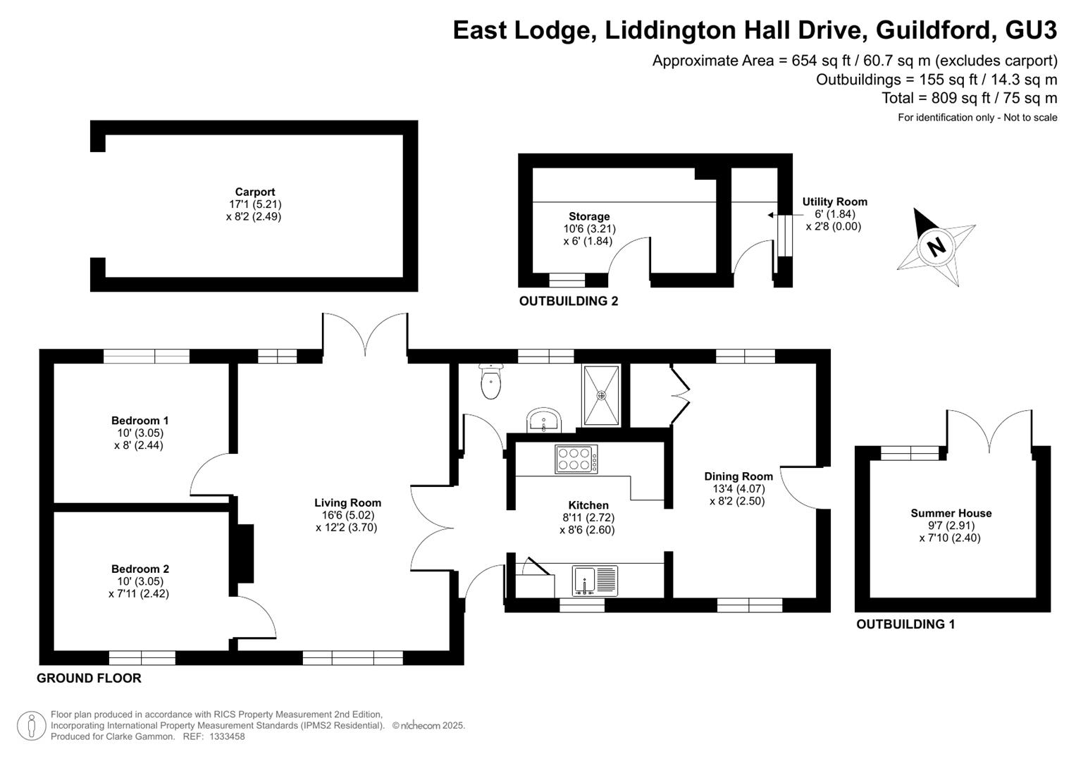 East Lodge is a characterful two-bedroom bungalow situated on Liddington Hall Drive, once the original driveway to the historic Liddington Hall. As the name suggests, East Lodge was formerly one of the estate’s lodges, and today it retains much of its charm and individuality. The property features attractive whitewashed elevations beneath a hipped slate tile roof, with side access and a carport to the front.Upon entering the home, you are welcomed into a central hallway with warm wooden flooring that continues into the living room. This generously sized, dual-aspect space enjoys views to both the front of the property and the rear garden. A log burner provides a focal point, while French doors open directly onto a large rear patio. Two double bedrooms lead off the living room—one overlooking the front of the property and the other enjoying views of the rear garden. The shower room is fitted with a modern three-piece suite, including a large walk-in shower, WC, and basin.The kitchen is appointed with cream shaker-style units, black quartz worktops, a Belfast sink, and a Rangemaster oven with cooker hood. Integrated appliances include a fridge and freezer, with space for a freestanding dishwasher. A tiled floor runs through into the dining room, which offers ample space for family meals and gatherings. From here, side access leads to a separate patio area and an outbuilding comprising a storage room and a utility room.The garden is a highlight of East Lodge. Extending to approximately 80 feet, it is mainly laid to lawn and immaculately maintained, bordered by mature deciduous trees and vibrant, well-established planting. Despite being north facing, the garden benefits from an interrupted east/west aspect, ensuring plenty of sunlight throughout the day.