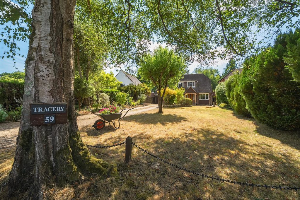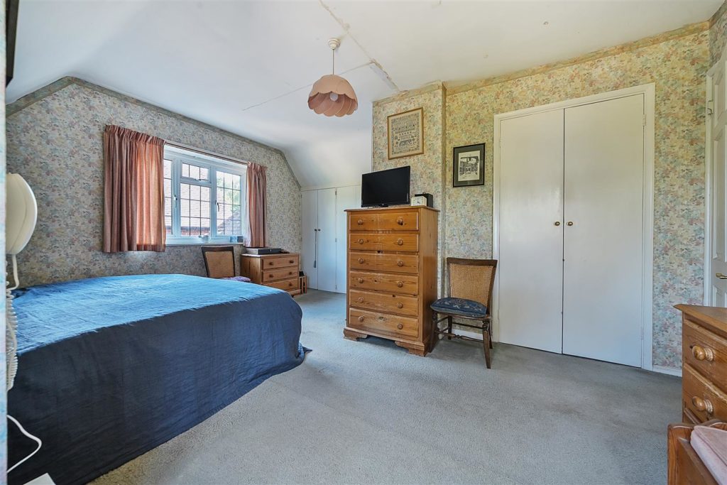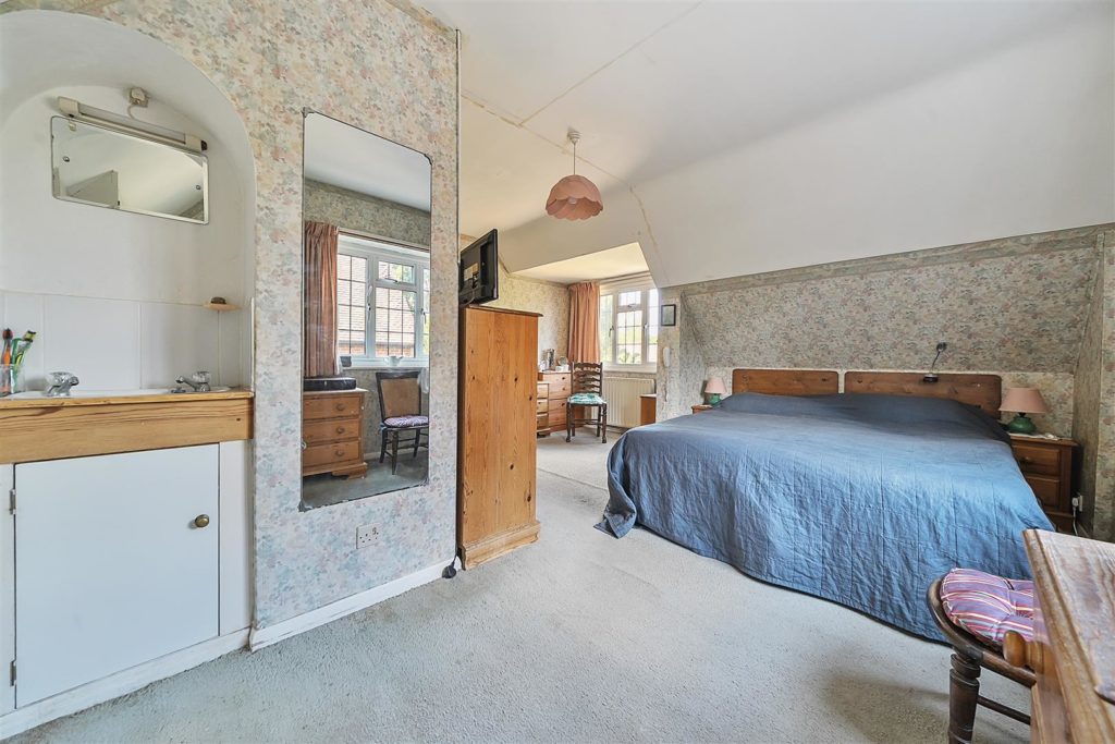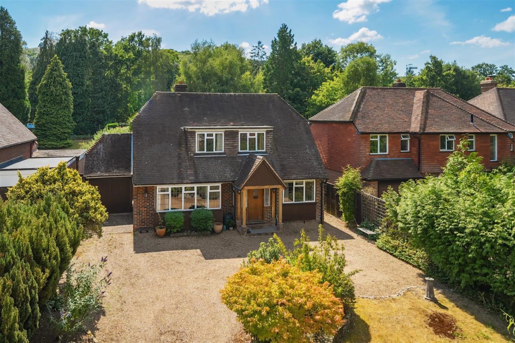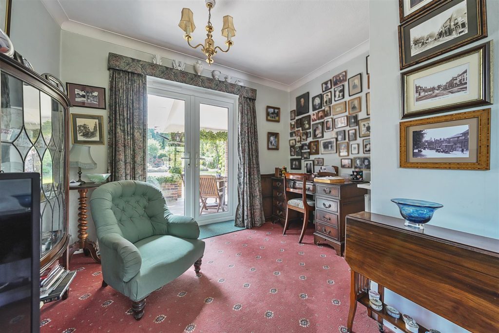Set on arguably the most desirable road in Bramley, Tracery is a much-loved five-bedroom detached home with a rich local history and a wonderfully versatile layout. Designed in 1959 by the current owner—and built by respected local builder J.A. Parsons, the house was constructed using red bricks sourced from nearby Smithbrook Kilns, adding to its authentic charm and character.A spacious hallway links all the principal rooms on the ground floor, where the layout is both warm and welcoming. The dual-aspect living room features a bay window to the front, patio doors to the rear, a gas fireplace, and a study area tucked away at the back. The front-facing dining room, also with a bay window, connects to the Beech Shaker-style kitchen via a serving hatch. The kitchen/breakfast room is fitted with laminated worktops, a stainless steel sink and drainer, and has provision for freestanding white goods. Both the living room and breakfast room open onto a covered seating area—perfect for enjoying the garden in all seasons.Upstairs, there are five bedrooms. The master bedroom includes built-in storage and a wash basin, while the second bedroom is a generous double with additional built-in wardrobes. Bedrooms three and four are also doubles, with the fourth currently used as a hobby room. The fifth bedroom, a single, is ideal as a study or nursery. A family bathroom with bath and basin is complemented by a separate WC and an additional wash basin.