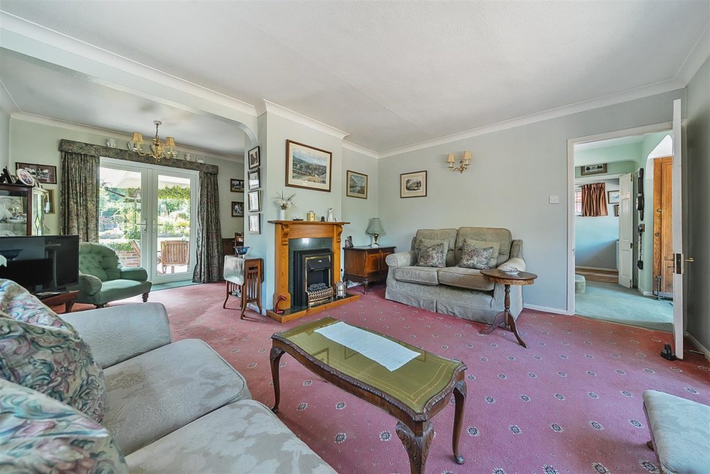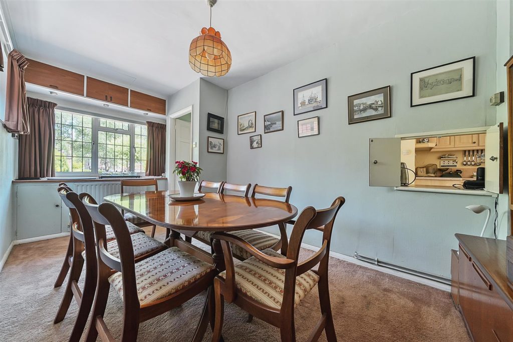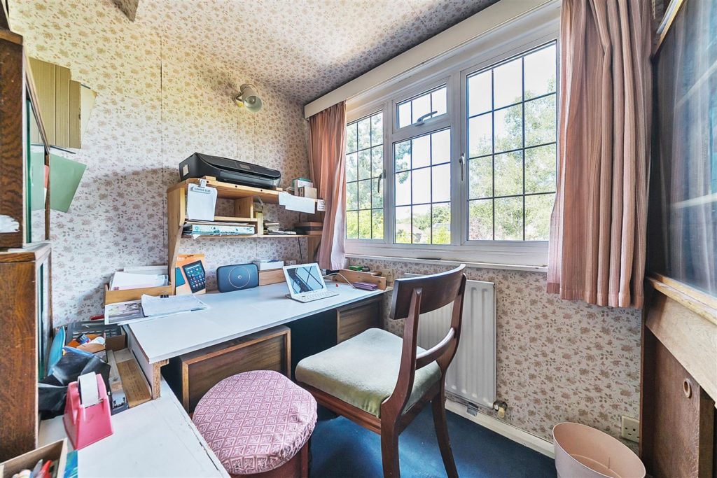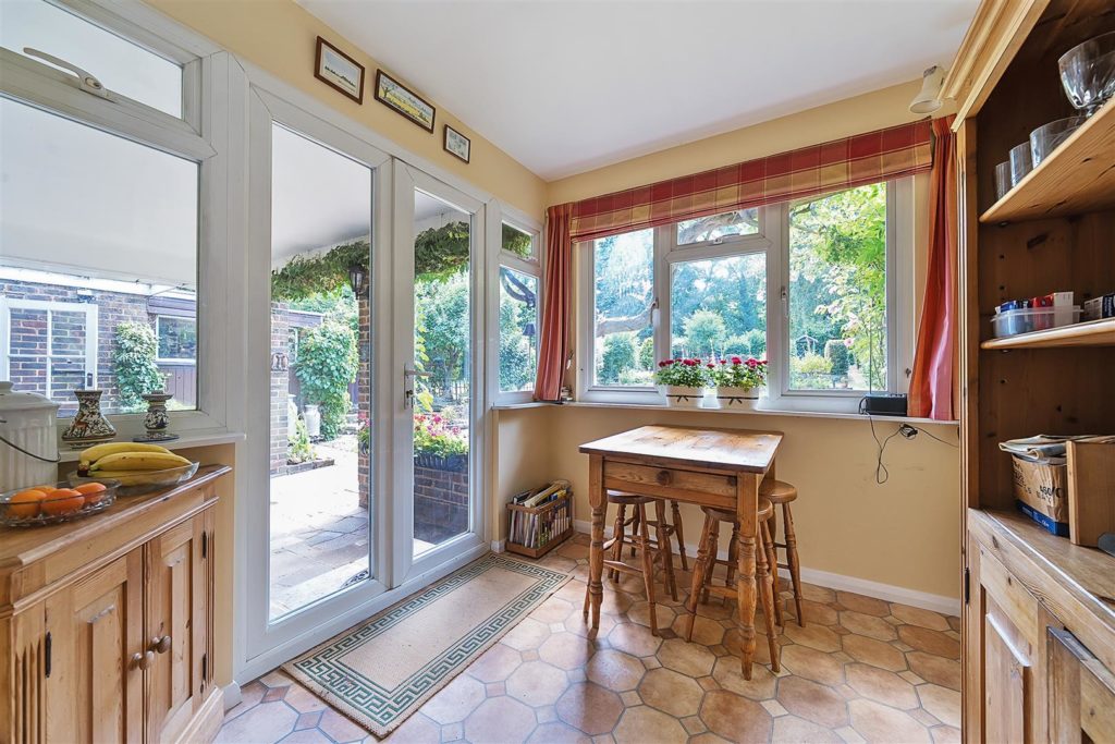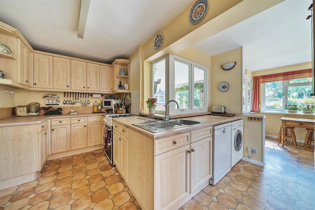 Set on arguably the most desirable road in Bramley, Tracery is a much-loved five-bedroom detached home with a rich local history and a wonderfully versatile layout. Designed in 1959 by the current owner—and built by respected local builder J.A. Parsons, the house was constructed using red bricks sourced from nearby Smithbrook Kilns, adding to its authentic charm and character.A spacious hallway links all the principal rooms on the ground floor, where the layout is both warm and welcoming. The dual-aspect living room features a bay window to the front, patio doors to the rear, a gas fireplace, and a study area tucked away at the back. The front-facing dining room, also with a bay window, connects to the Beech Shaker-style kitchen via a serving hatch. The kitchen/breakfast room is fitted with laminated worktops, a stainless steel sink and drainer, and has provision for freestanding white goods. Both the living room and breakfast room open onto a covered seating area—perfect for enjoying the garden in all seasons.Upstairs, there are five bedrooms. The master bedroom includes built-in storage and a wash basin, while the second bedroom is a generous double with additional built-in wardrobes. Bedrooms three and four are also doubles, with the fourth currently used as a hobby room. The fifth bedroom, a single, is ideal as a study or nursery. A family bathroom with bath and basin is complemented by a separate WC and an additional wash basin.