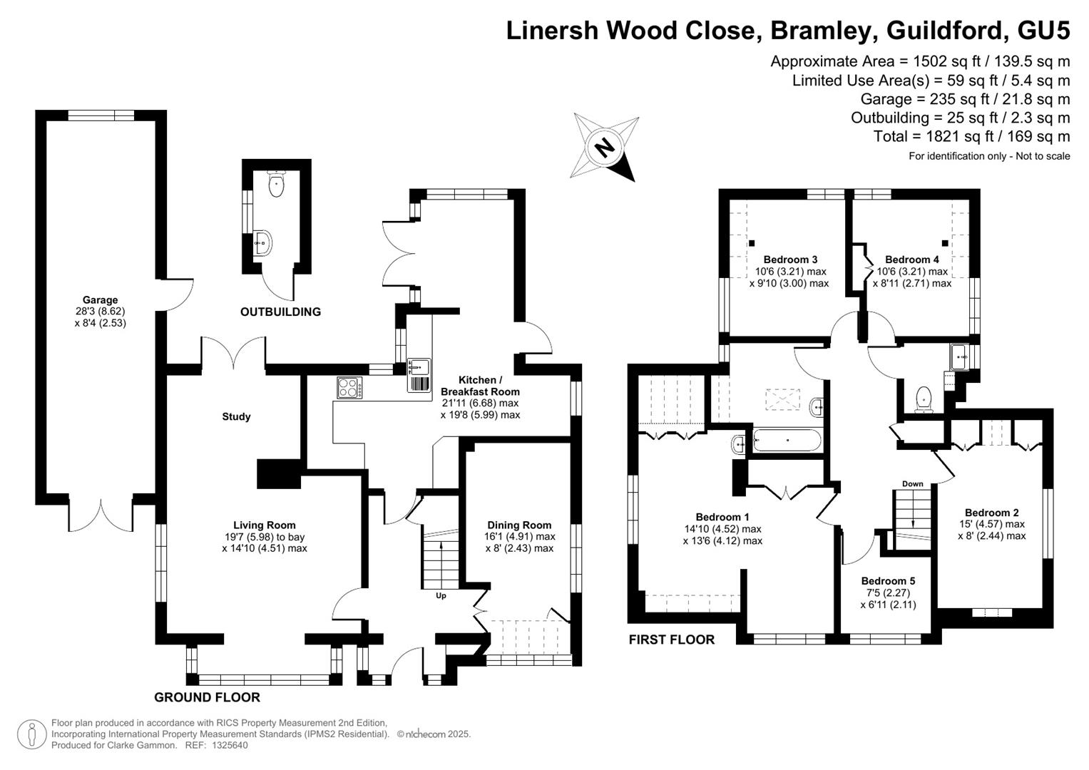 Set on arguably the most desirable road in Bramley, Tracery is a much-loved five-bedroom detached home with a rich local history and a wonderfully versatile layout. Designed in 1959 by the current owner—and built by respected local builder J.A. Parsons, the house was constructed using red bricks sourced from nearby Smithbrook Kilns, adding to its authentic charm and character.A spacious hallway links all the principal rooms on the ground floor, where the layout is both warm and welcoming. The dual-aspect living room features a bay window to the front, patio doors to the rear, a gas fireplace, and a study area tucked away at the back. The front-facing dining room, also with a bay window, connects to the Beech Shaker-style kitchen via a serving hatch. The kitchen/breakfast room is fitted with laminated worktops, a stainless steel sink and drainer, and has provision for freestanding white goods. Both the living room and breakfast room open onto a covered seating area—perfect for enjoying the garden in all seasons.Upstairs, there are five bedrooms. The master bedroom includes built-in storage and a wash basin, while the second bedroom is a generous double with additional built-in wardrobes. Bedrooms three and four are also doubles, with the fourth currently used as a hobby room. The fifth bedroom, a single, is ideal as a study or nursery. A family bathroom with bath and basin is complemented by a separate WC and an additional wash basin.