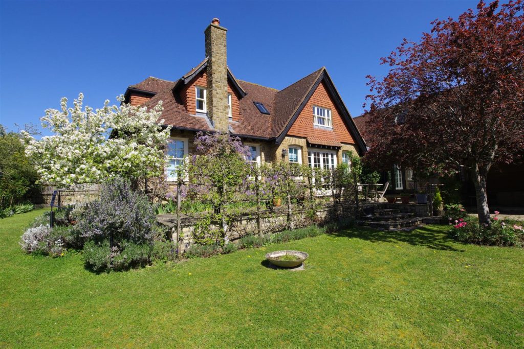 Set in the peaceful hamlet of Littleton, this beautifully converted Victorian schoolhouse enjoys a delightful rural setting overlooking the Loseley Estate, yet just moments from Guildford’s vibrant town centre. It has been carefully and sympathetically modernised, blending historic character with modern convenience. With attractive Bargate stone elevations, the home is filled with period details and offers a unique setting for contemporary living. The property would also suit a discerning downsizer, offering a perfect combination of charm, versatility, and comfort in an enviable location.The ground floor welcomes you with a stunning tiled hallway that flows effortlessly into the main living areas. The double-aspect living room is a bright, airy space, featuring a bay window. Double doors lead from the living room to the adjacent dining room, creating an open, interconnected layout that is perfect for entertaining. The flow between the living, dining, and kitchen areas ensures the downstairs is an ideal space for family gatherings and social occasions. Double doors also lead from both the kitchen and dining room to the terrace, extending the living space outdoors for alfresco dining and relaxing in the mature garden.The stylish kitchen is equipped with an Everhot oven, bespoke cabinetry, and a breakfast area perfect for casual dining. A utility room, a downstairs shower room, and a separate study complete the ground-floor spaces, offering additional practical elements to the home.