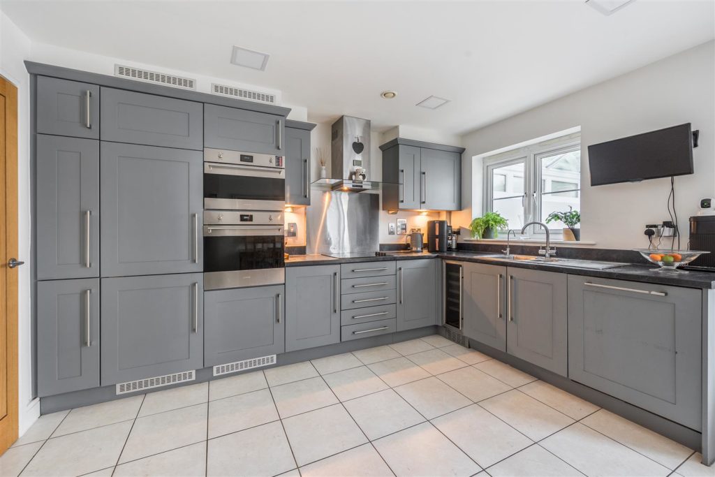 - Stylish shaker-style kitchen with integrated appliances and separate utility room