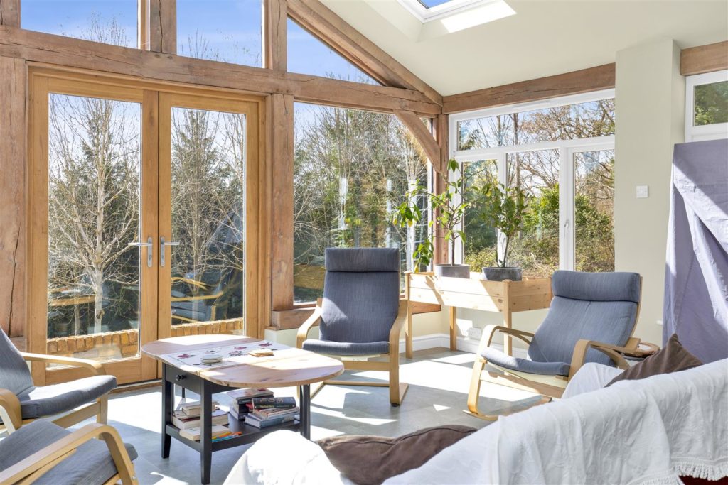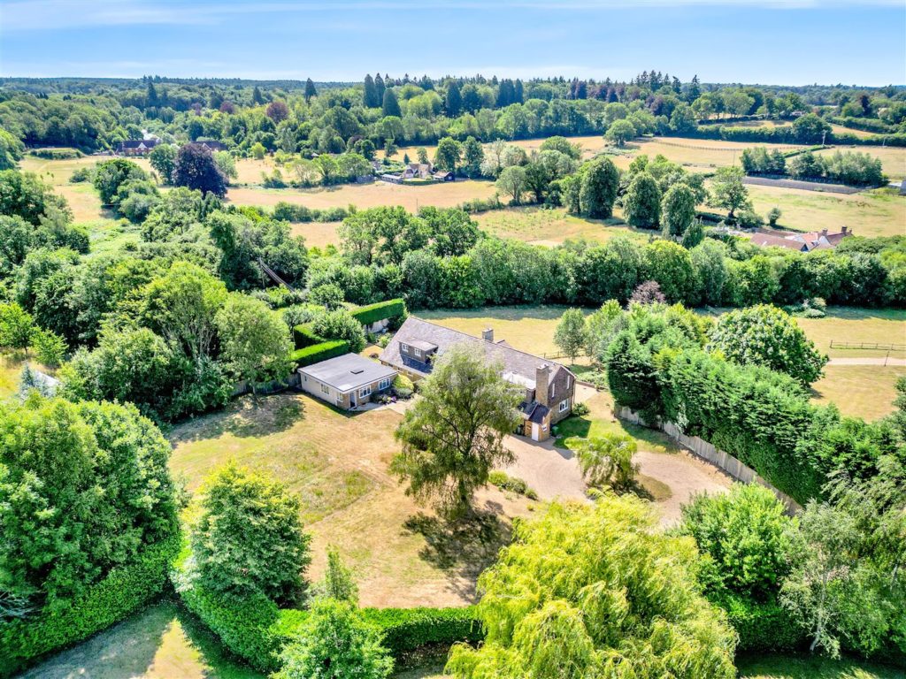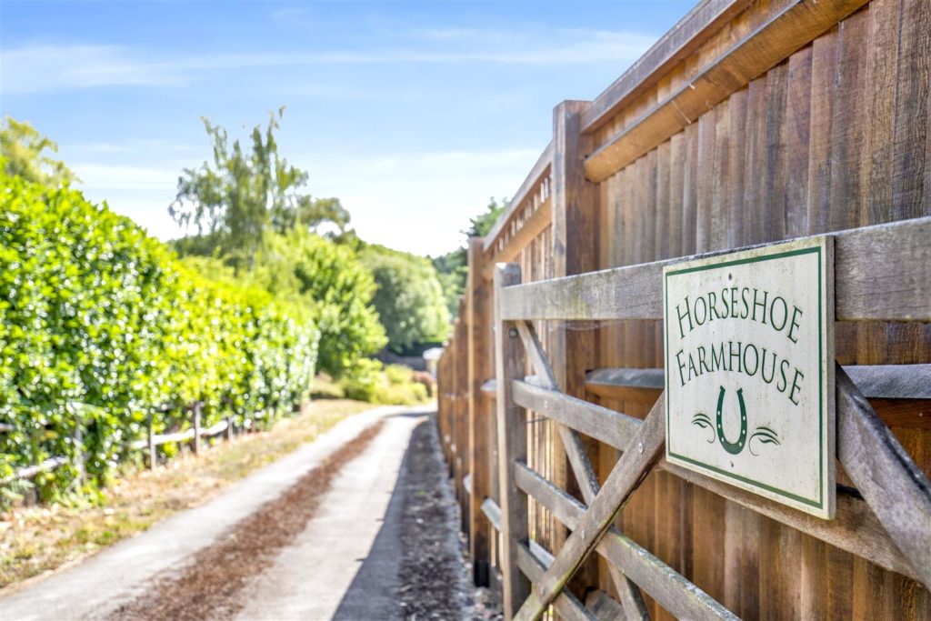 Clarke Gammon are delighted to bring Horseshoe Farmhouse to the market — a charming country residence set in grounds of just under one acre, nestled at the end of a private lane.Horseshoe Farmhouse occupies an elevated position, with all principal rooms enjoying sweeping, panoramic views over the surrounding countryside. Bathed in natural light throughout, the home is particularly enhanced by a beautifully designed and skilfully crafted orangery — the true heart of the house. Offering an impressive 4,600 sq ft of accommodation (including the annexe/home office building), the layout is both spacious and flexible, providing up to seven bedrooms and five reception rooms. The ground floor rooms all flow seamlessly from a central entrance hall, including direct access to the orangery, perfect for entertaining or relaxing while enjoying the scenery. Upstairs, there is a master bedroom with en-suite, two dressing areas and delightful balcony. There are also four further double bedrooms and two single bedrooms (one of which is currently used as a home office). The previously mentioned detached annexe building has been used to run a business from home. The building is established with a large open plan office space, as well as side office space, a toilet and kitchenette. This building had been formerly used as a granny flat. With some alterations, this area could be converted to such again.Outside, the property is approached by a long driveway which is shared with just two neighbouring homes. A gated entrance then leads into a generous shingle driveway with a circular turning area, bordered by mature gardens with level lawns, sun terraces, and a variety of fruit trees — including plum and apple. The grounds, which measure to 0.83 of an acre, offer excellent privacy without compromising on the stunning southerly outlook the property enjoys.