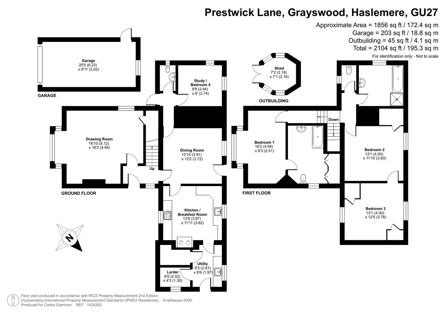 - 3 first floor bedrooms, ground floor bedroom 4/study