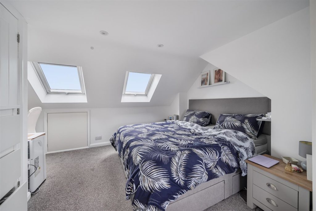 - Spacious loft master bedroom with Velux windows, eaves storage, and stylish en-suite