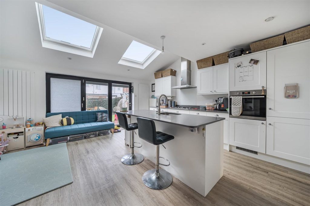 - Impressive rear kitchen/diner with bi-fold doors, Velux windows, and central island