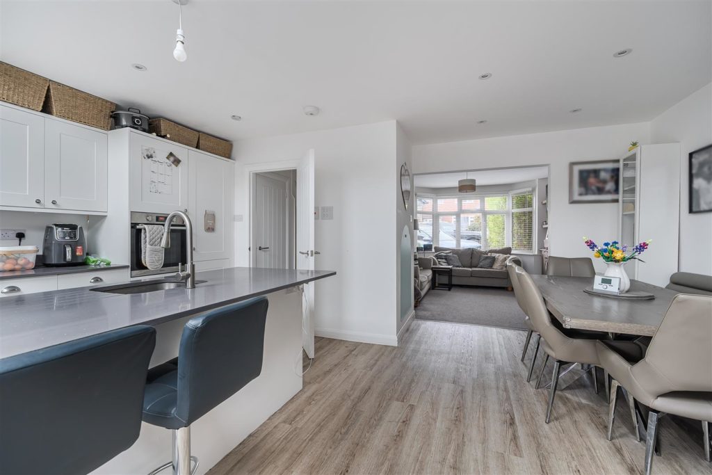 - Welcoming living room with feature fireplace, open to kitchen/diner for family living