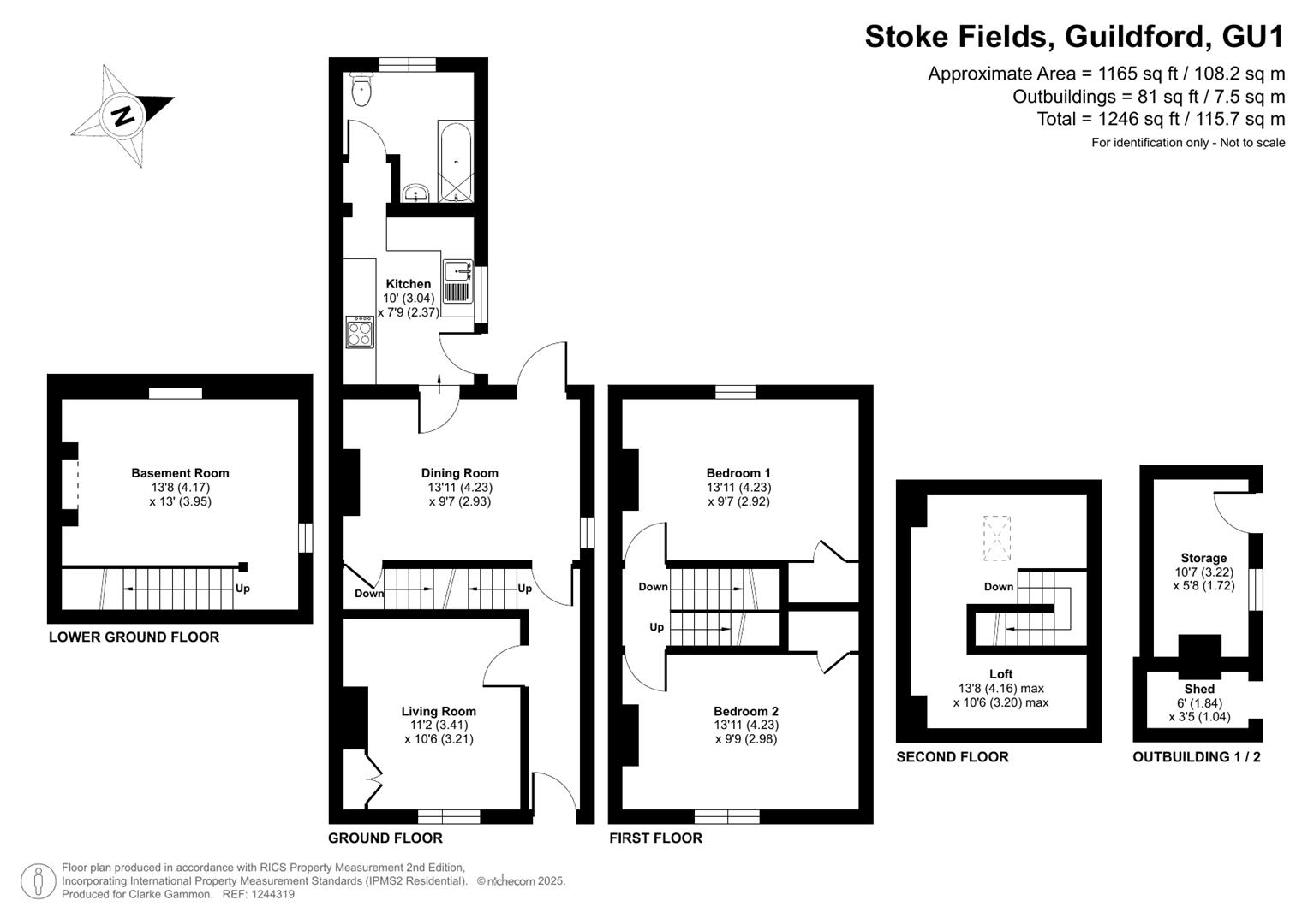 An attractive semi-detached Victorian house retaining many of the character features including cast iron fireplaces and a useful basement. Stoke Fields is a lovely place to live in a unique street located within a conservation area with most of Guildford's attractions being within walking distance. Vacant possession with no onward chain. Accommodation comprises: entrance with door to hallway; living room (currently used as a bedroom) with cast iron feature fireplace; dining room with brick surround fireplace, laminate wood flooring and door opening to the rear garden; kitchen with fitted white units and contrasting laminate worktops and laminate wood flooring; downstairs bathroom fitted with a white suite comprising bath, basin, W.C., part-tiled walls and laminate wood flooring. Upstairs, on the first floor there are two double bedrooms with fitted cupboards and laminate wood flooring. There is also a useable basement room (currently set up as a living/TV room) and a small office/work area in the loft space complete with Velux roof window.To the front of the property, there is a walled garden with pathway to front entrance and flanked by areas laid to lawn. The enclosed rear garden is a good size and mostly hard landscaped with paving and shingle with a secure fenced perimeter. There is also a brick-built outbuilding/storage shed.