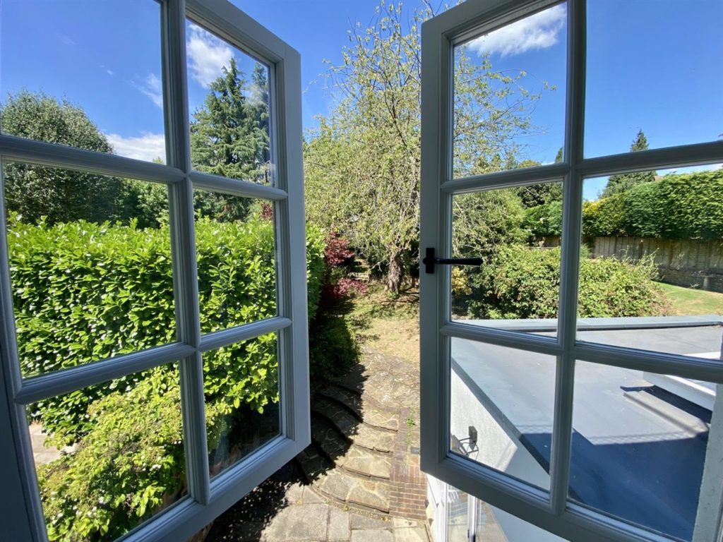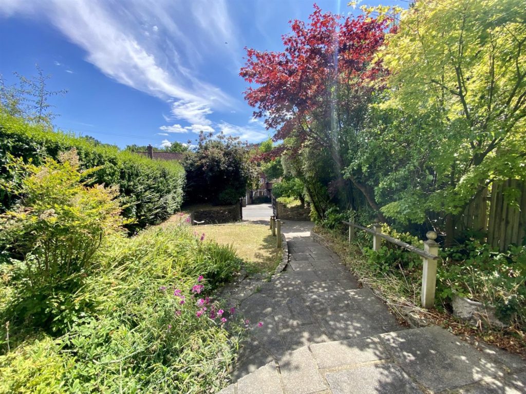 The property is approached by its brick paved driveway, with parking and turning space with steps leading to the front paved entrance area and front door. Either side are shaped flower and shurb boarders and raised lawn. To the rear is an established good size garden, gated side access which has a built in store. There is a wide terrace and pathway with lawn to the side and steps leading to a further section of raised lawn. All of which is enclosed by established hedged boundaries.