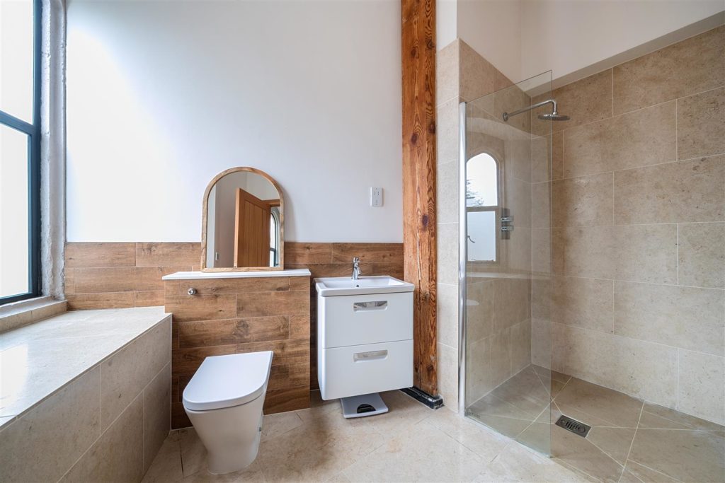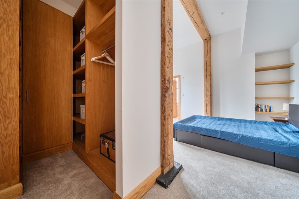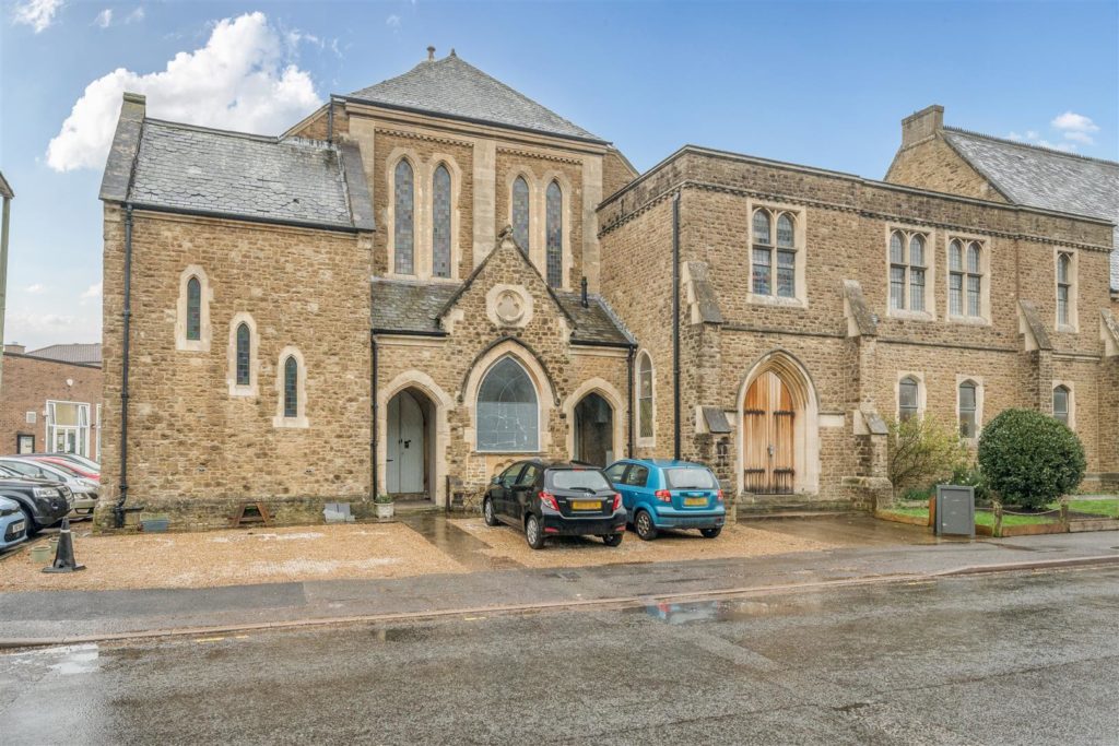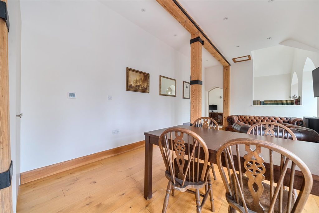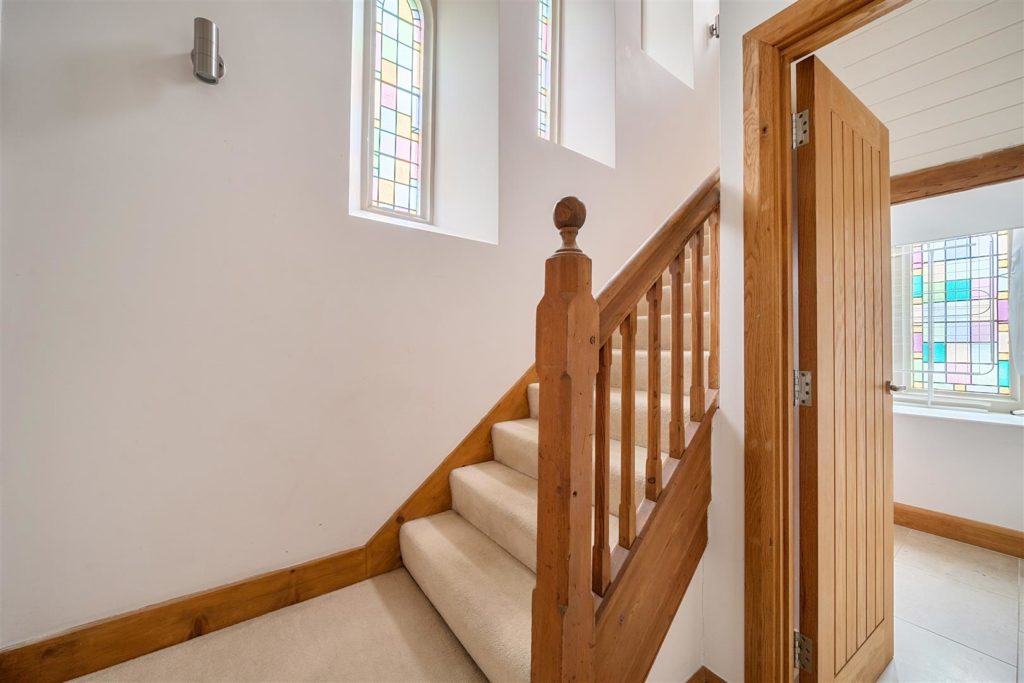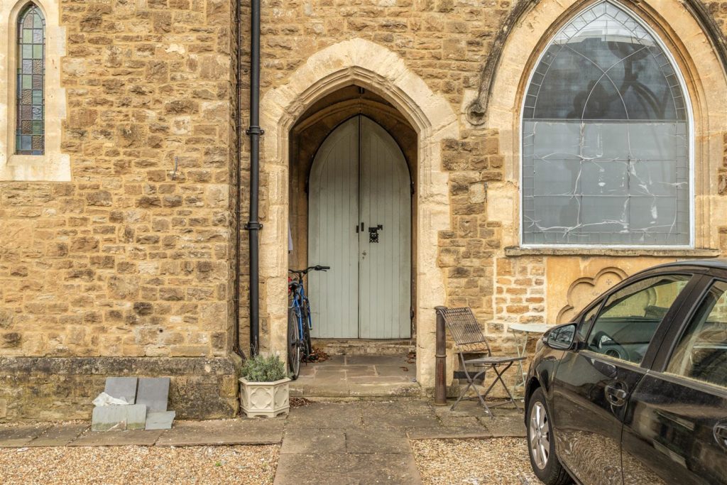2 Rotunda forms part of the historic Grade II listed Rotunda building on The Burys in central Godalming, within easy reach of the High Street and mainline station. The Rotunda was constructed in 1883 by architect Samuel Welman using Bargate stone and was originally designed as a circular Sunday school with a domed roof, intended to allow pupils to see the teacher clearly from all angles. The wider Rotunda and Old Church complex has since been restored, with part of the Rotunda converted for residential. The property is offered with no onward chain and has dedicated parking to the front for 2 carsA porch to the front leads into the hallway. On the ground floor, there is a generous master bedroom with two built in wardrobe areas and an en suite shower room comprising a basin set within a vanity unit, a walk in shower and a WC. There is a further double bedroom served by a three piece bathroom, which includes a bath with shower over, WC, basin with vanity unit, heated towel rail and large stained glass windows. The utility room completes the ground floor accommodation.Stairs lead to a landing area currently arranged as a home office. On the first floor, there is an open plan kitchen and living area set within the original curved form of the Rotunda. The kitchen includes an induction hob, electric oven, built in microwave, fridge freezer and a single sink with drainer. The room retains features of the original structure, including large windows and stained elements that reference the building’s past.