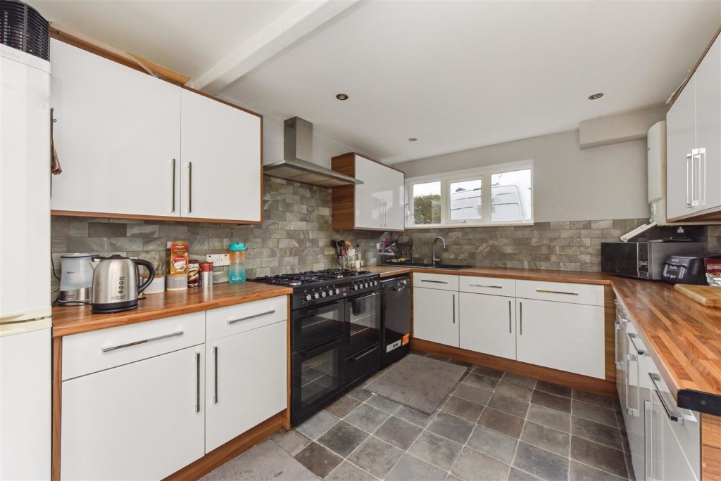 A pleasant terraced house, situated in a no through road close to the centre of Liphook. This terraced house sits comfortably in its plot, is set back behind a blocked paved driveway which can house three vehicles and has natural screening to either side. One is welcomed into the property through an attractive replacement door with similar themed porch overhead. Once inside, the house offers generously proportioned accommodation to either side of a central staircase. The two ground floor rooms are a living room and a kitchen/dining room. The spacious living room has windows to the front and rear. There is also a chimney and fireplace. There is currently a wood burner in situ, although this is not included in the sale. The kitchen/dining room is located to the other side. Here you’ll find a fitted kitchen with gloss effect doors and a wooden themed work surfaces. There’s a decent selection of cupboards and space and connection for kitchen appliances. The room also enjoys a front and rear aspect, space for a dining table and a door to the rear garden. The rear garden is an impressive size and is enclosed by a variety of natural screen and fencing. The garden has a blend of patio, which immediately adjoins the house, followed by a good area of level lawn. A paved path leads towards the rear of the garden. Here there is a grand detached timber structured garage. The property is very well positioned for the shops and eateries on Station Road, and Liphook station. The local schools are within walking distance as well. The village amenities include a Co-op with Post Office, a large Sainsbury’s and a wide range of local, independent shops. The village has a range of coffee shops, a cinema and community centre. The trainline runs between Portsmouth and London Waterloo. There is also easy access to the A3.Please note that there has been digital editing to the front photo of the property.