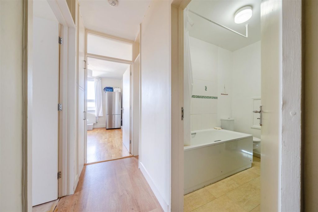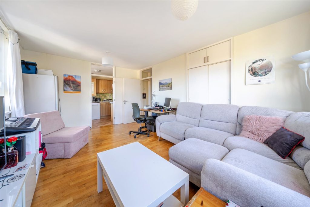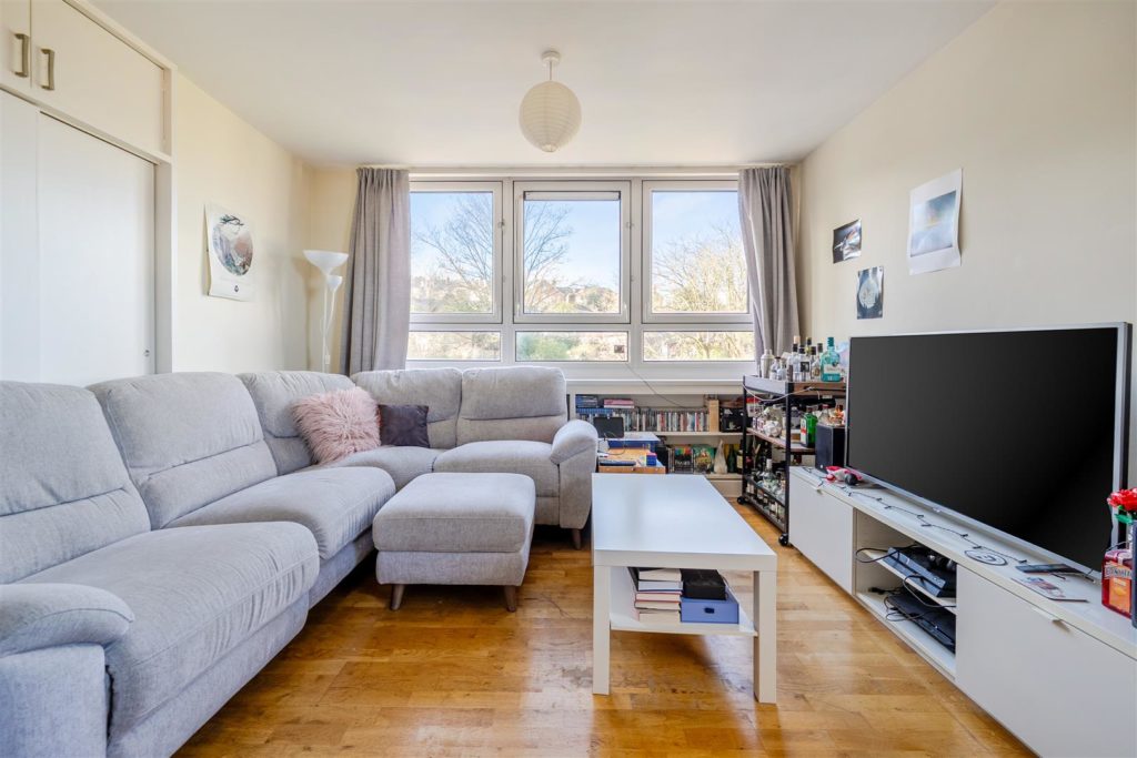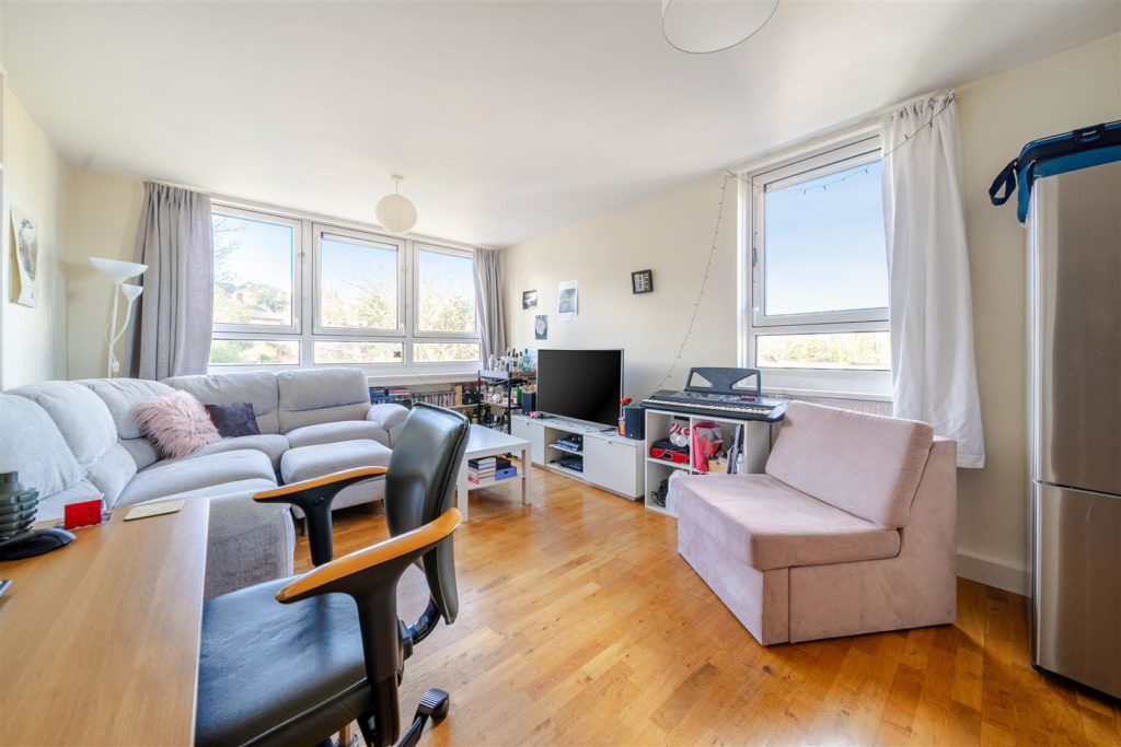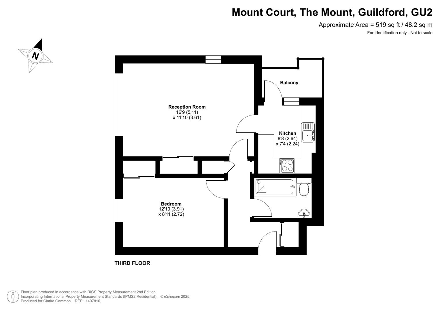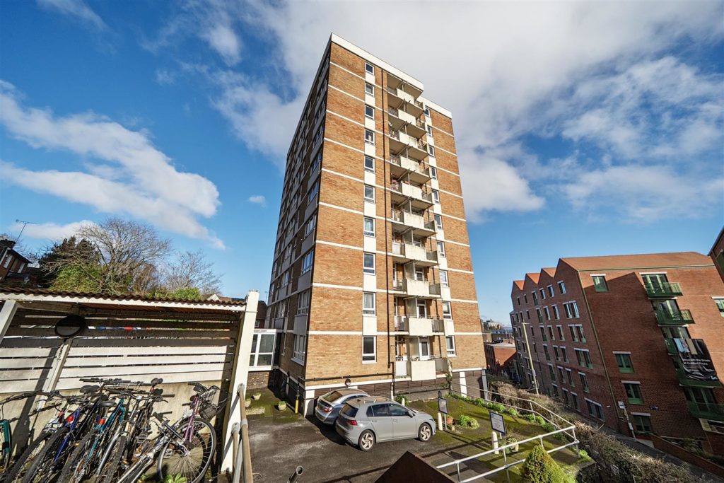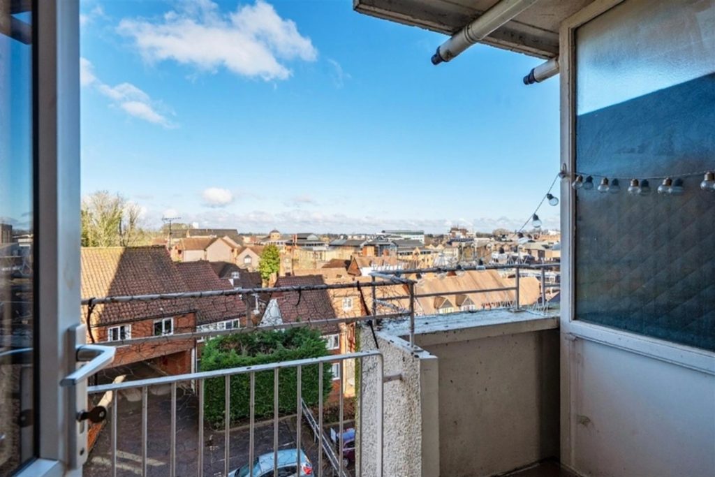 13 Mount Court presents a bright and well-arranged one-bedroom apartment with a private balcony offering views towards the cathedral and the High Street. The property is offered with no onward chain and enjoys a convenient position less than a ten-minute walk from Guildford Mainline Station, making it an ideal choice for commuters, first-time buyers and investors.Located on the third floor, the apartment benefits from lift access. A hallway with built-in storage leads to every room, creating a practical and welcoming layout. The reception room enjoys a double aspect with large windows that frame far-reaching views across the town, while the adjoining kitchen sits just off the living area and opens directly onto the private balcony. The kitchen is fitted with beech-effect units, laminate work surfaces, a stainless-steel sink, an integrated electric oven, a gas hob with cooker hood above, and space for further appliances.The double bedroom includes integrated storage, and the bathroom is arranged as a three-piece suite with a bath and shower over, toilet and basin. Recent upgrades to the building include newly installed fire doors.Residents benefit from permit-based parking, which is readily available, along with basement storage ideal for bikes, luggage or seasonal items. Garage spaces are also available on a waitlist basis, adding further convenience to this well-located home.